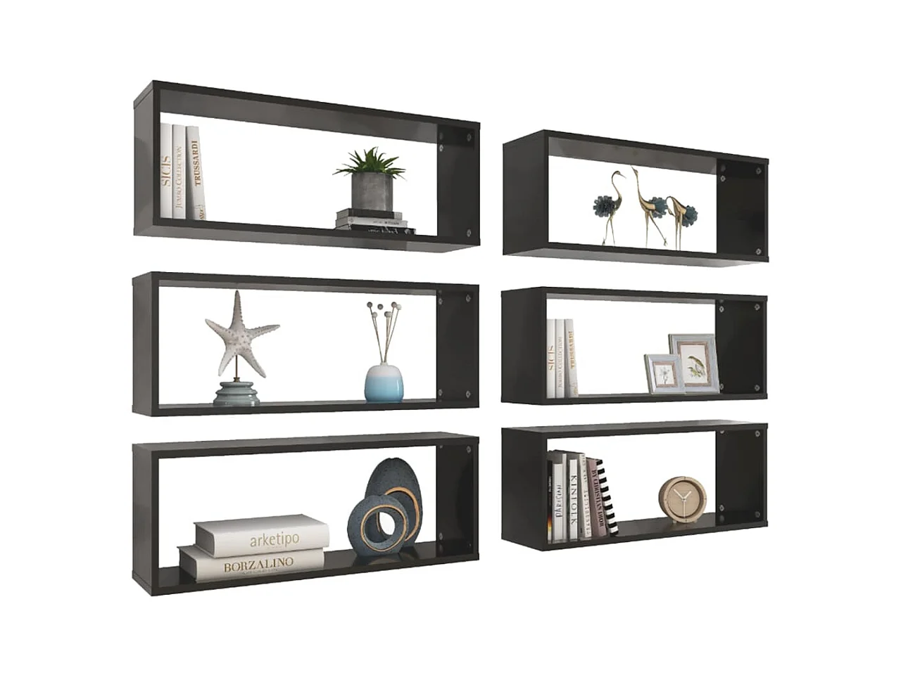 Étagères cube murales 6 pcs Noir 60x15x23 cm Aggloméré OFR59845 BonneVie Meuble
