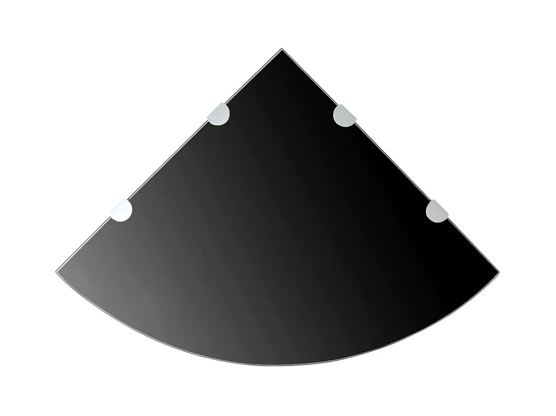 Étagères d'angle 2 pcs et supports chromés Verre Noir 45x45 cm