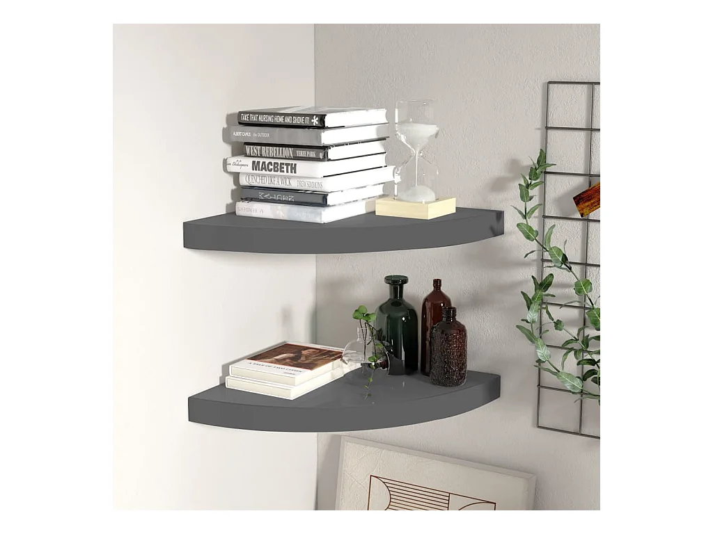 Étagères d'angle murales 2pcs gris brillant 35x35x3,8 cm MDF OFR45702 BonneVie Meuble