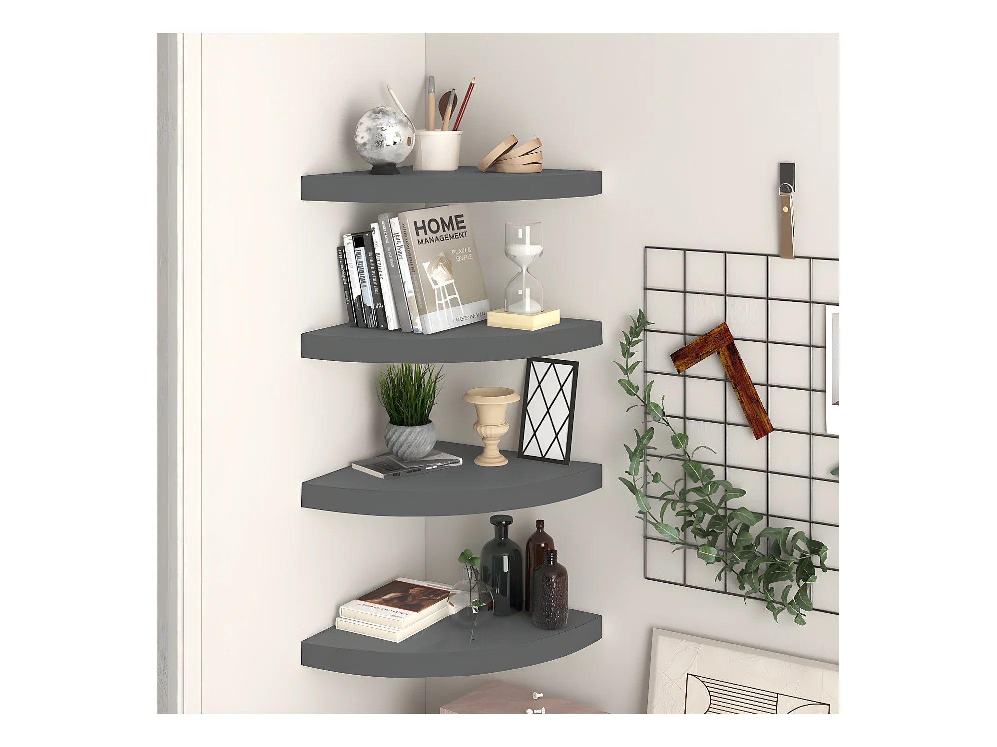 Étagères d'angle murales 4 pcs gris brillant 35x35x3,8cm MDF OFR59681 BonneVie Meuble