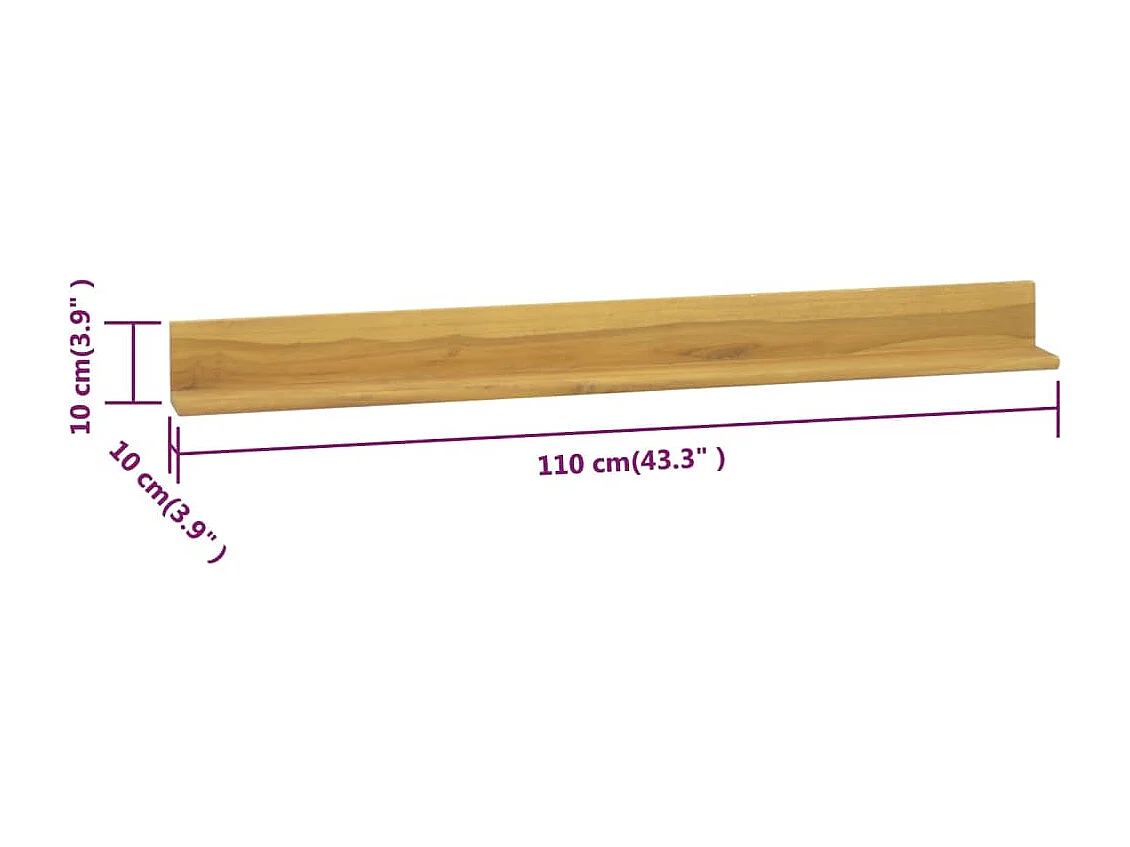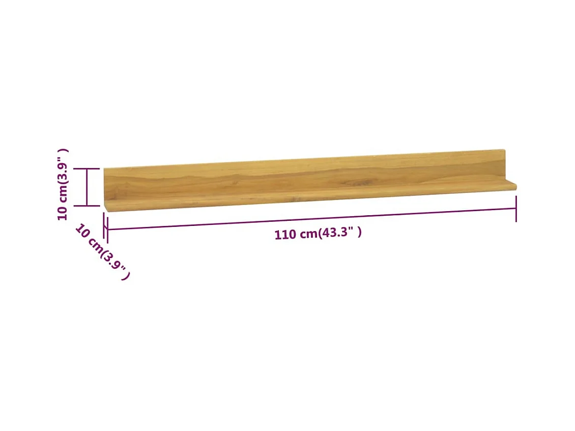 Étagères murales 2 pcs 110x10x10 cm Bois de teck massif