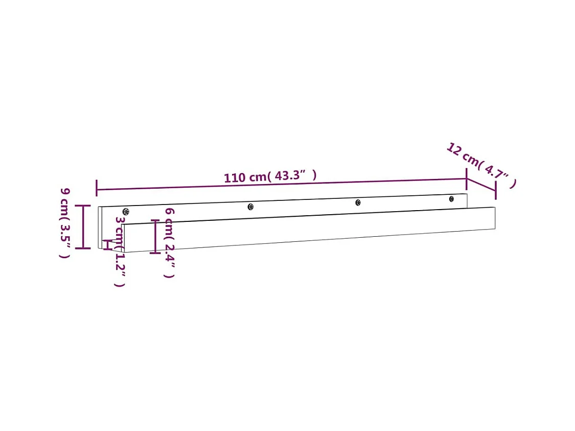Étagères murales 2 pcs 110x12x9 cm Bois de pin massif