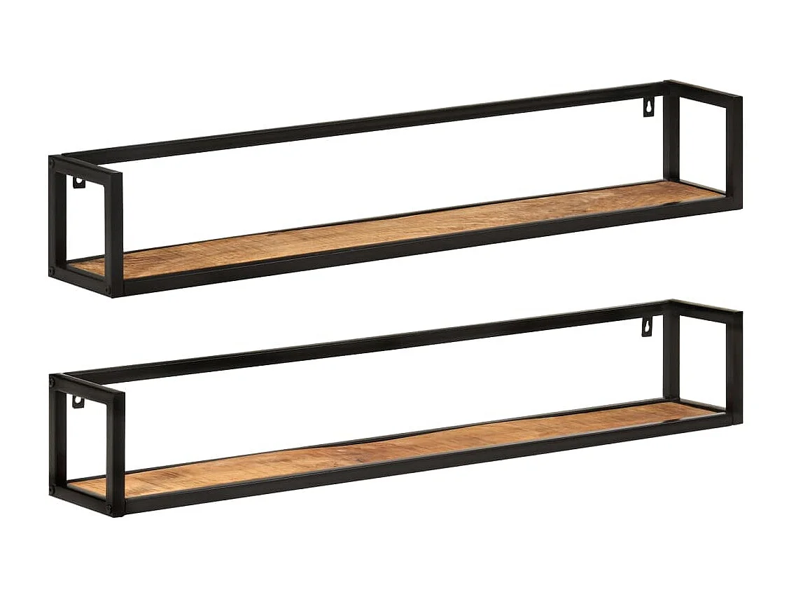 Étagères murales 2 pcs 110x17x17 cm bois massif manguier et fer