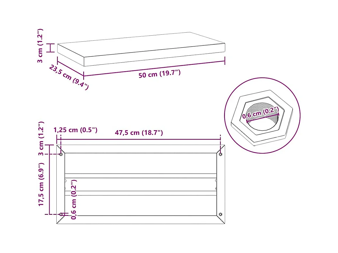 Étagère murale 75x45x31 cm argenté acier inoxydable
