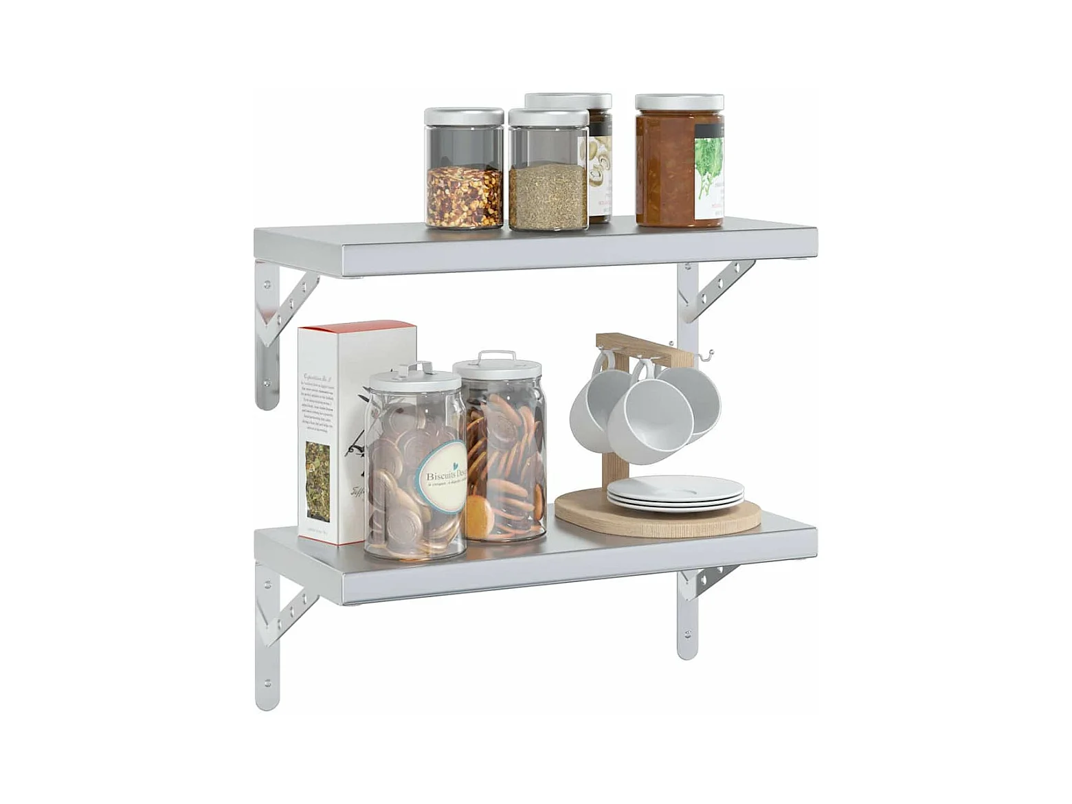 Étagère murale 2 niveaux 75x23,5x60 cm argenté acier inoxydable