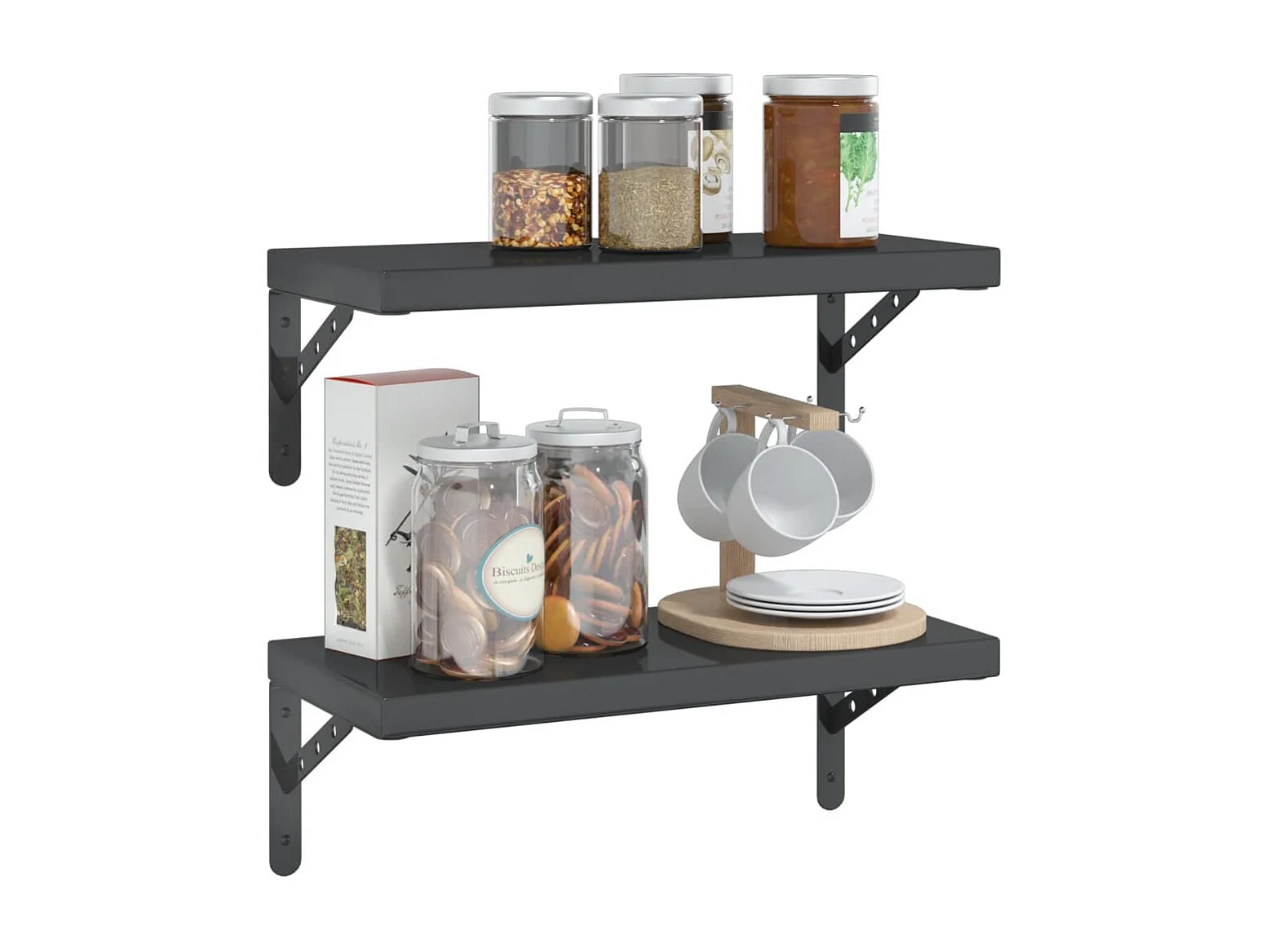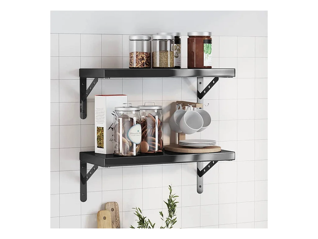 Étagères murales 2 pcs 75x23,5x3 cm noir acier inoxydable