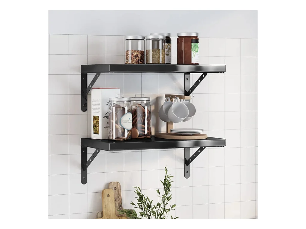 Étagères murales 2 pcs 75x30 cm noir acier inoxydable FR840025