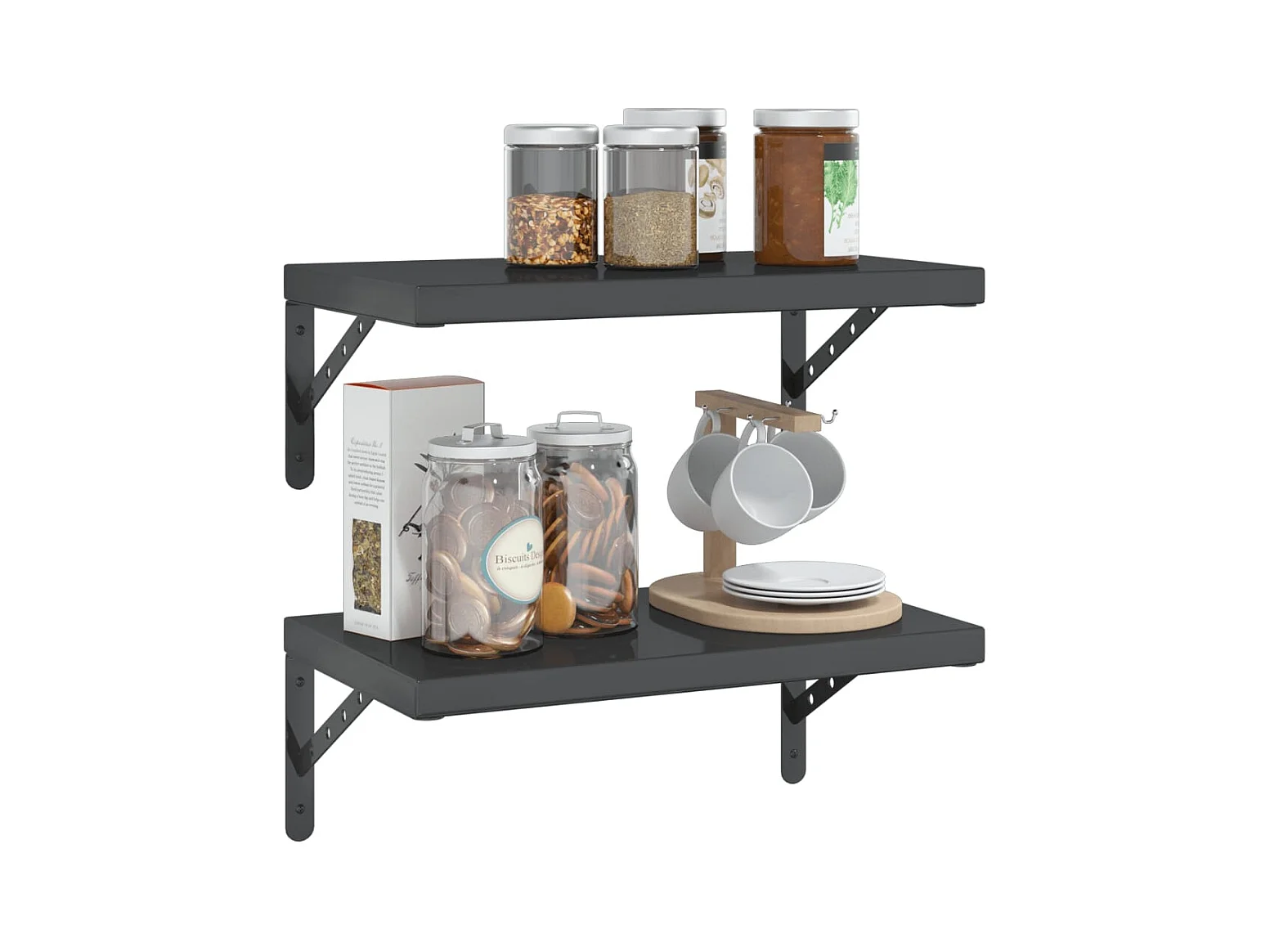 Étagères murales 2 pcs 75x40 cm noir acier inoxydable FR130585