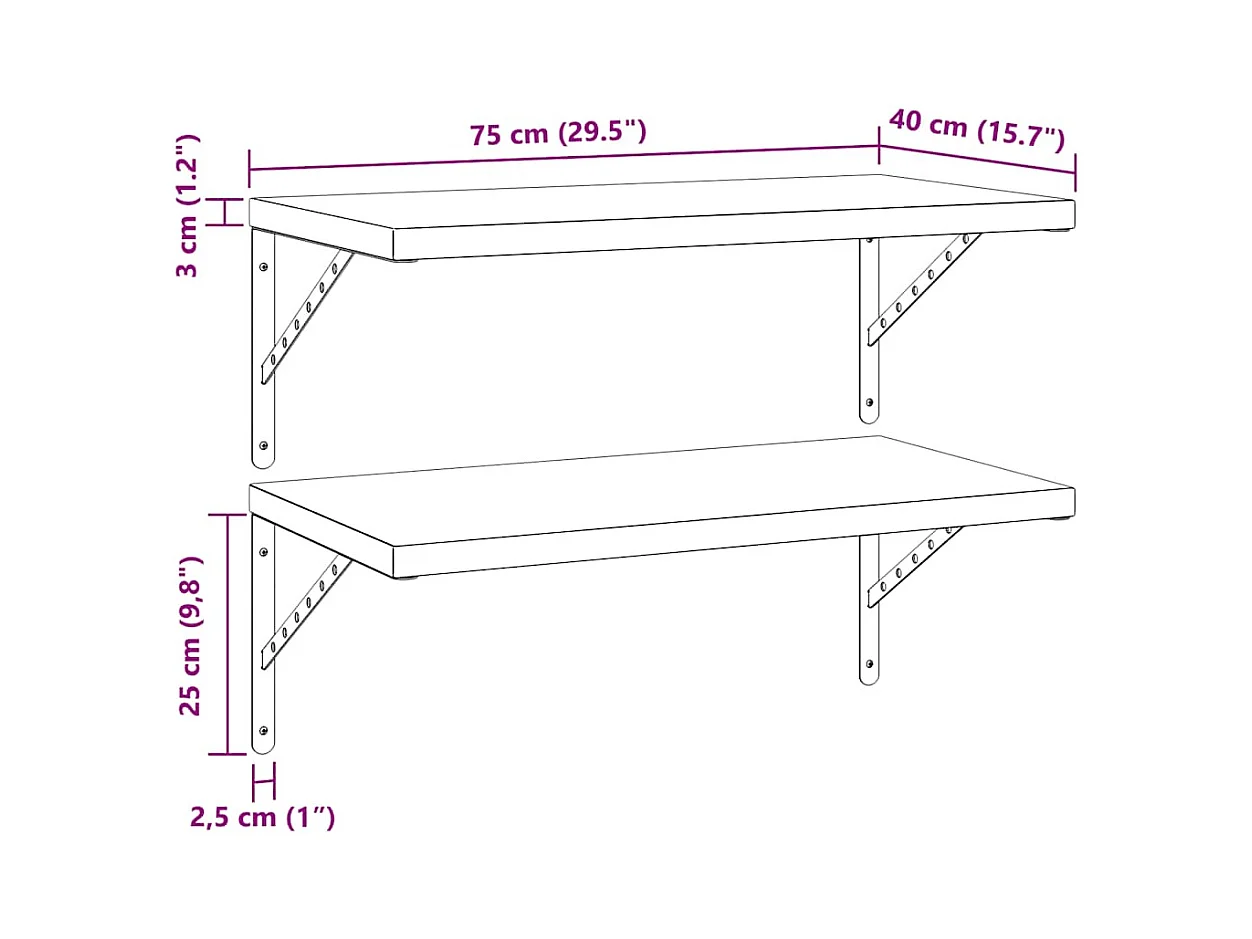 Étagères murales 2 pcs 75x23,5 cm argenté acier inoxydable