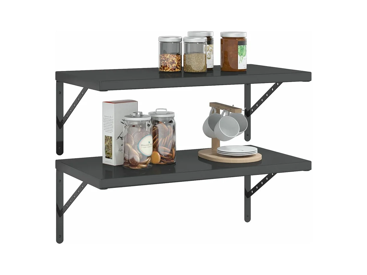 Étagères murales 2 pcs 75x30 cm noir acier inoxydable FR840025