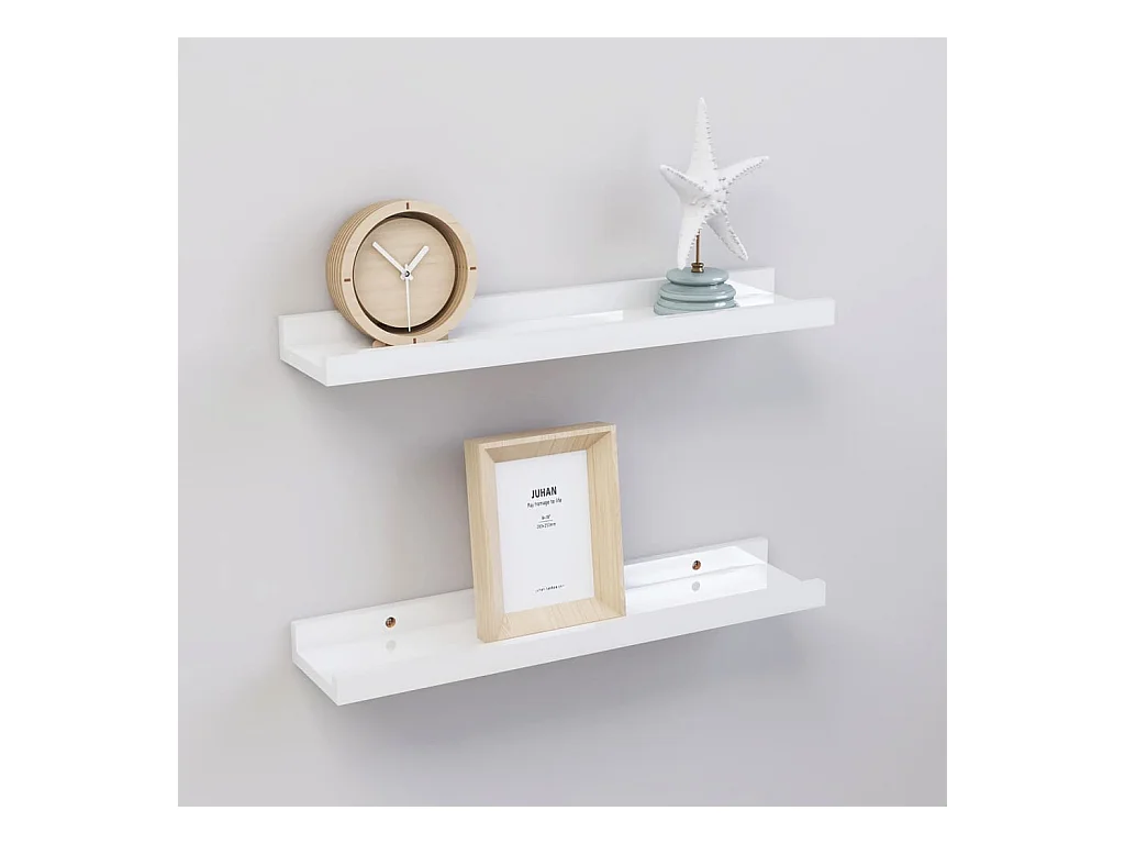 Étagères murales 2 pcs Blanc brillant 40x9x3 cm OFR89412 BonneVie Meuble