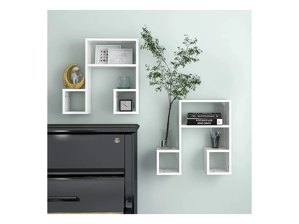 Étagères murales cube 2 pcs Blanc 60x15x23 cm Aggloméré OFR52999 BonneVie Meuble