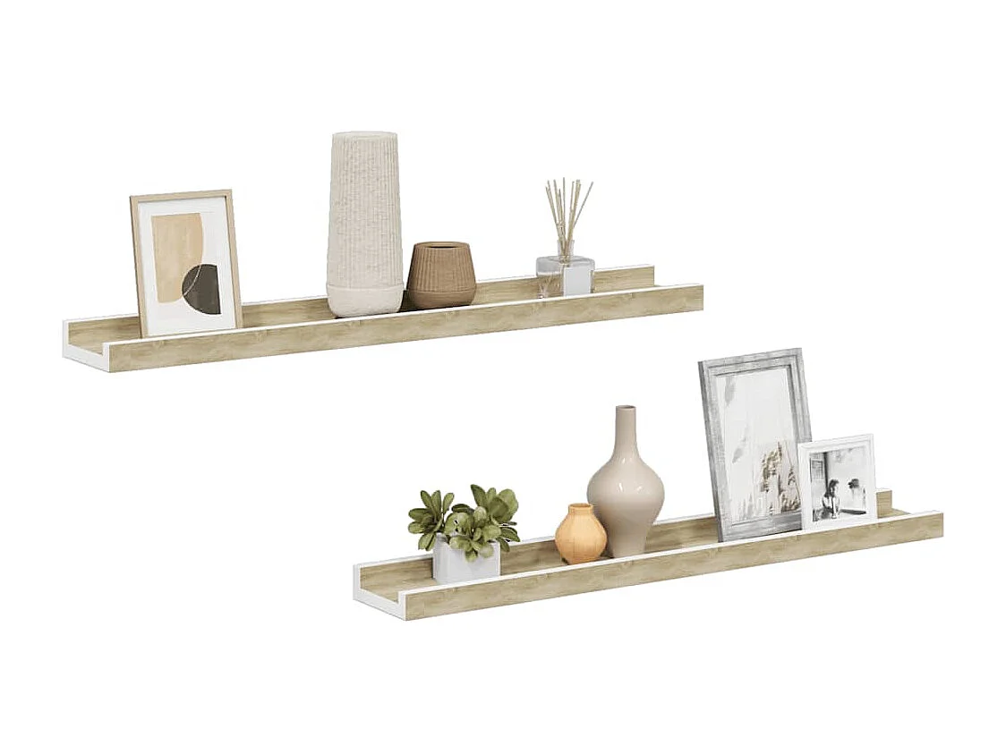 Étagères murales 2 pcs blanc et chêne sonoma 80x9x3 cm