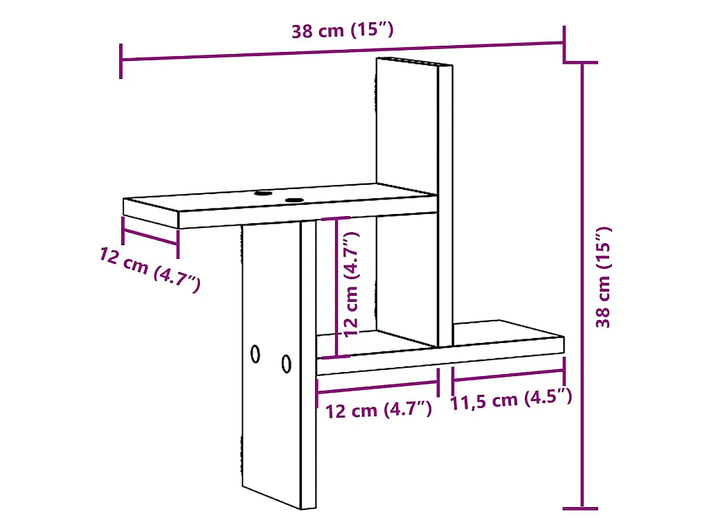 Étagères murales 2 pcs chêne fumé 38x12x38 cm bois d'ingénierie