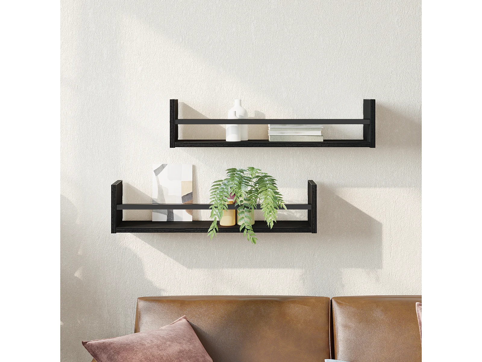 Ensemble d'étagères murales en chêne noir en bois d'ingénierie