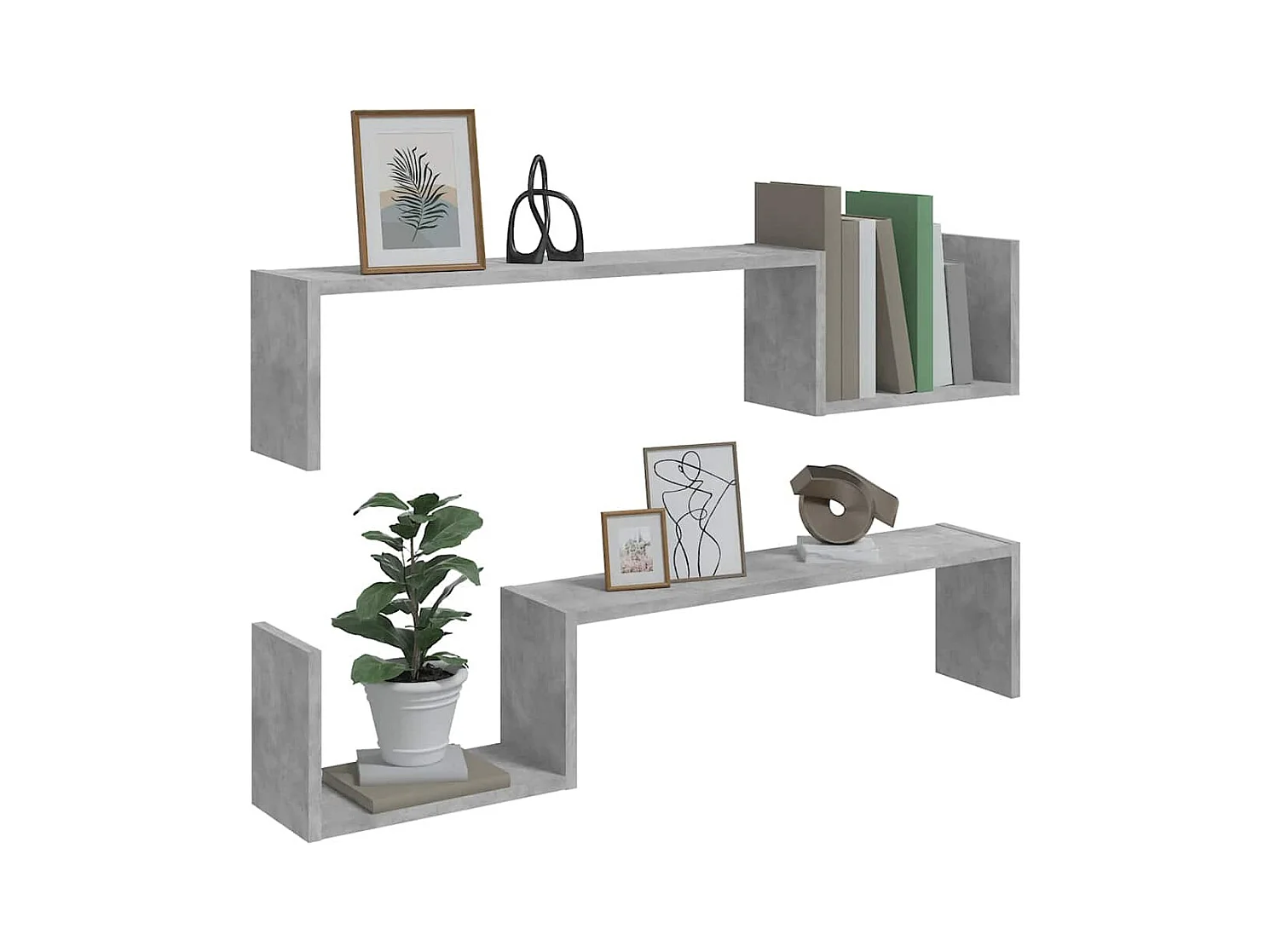 Étagères murales 2 pcs gris béton 100x15x20cm bois d'ingénierie