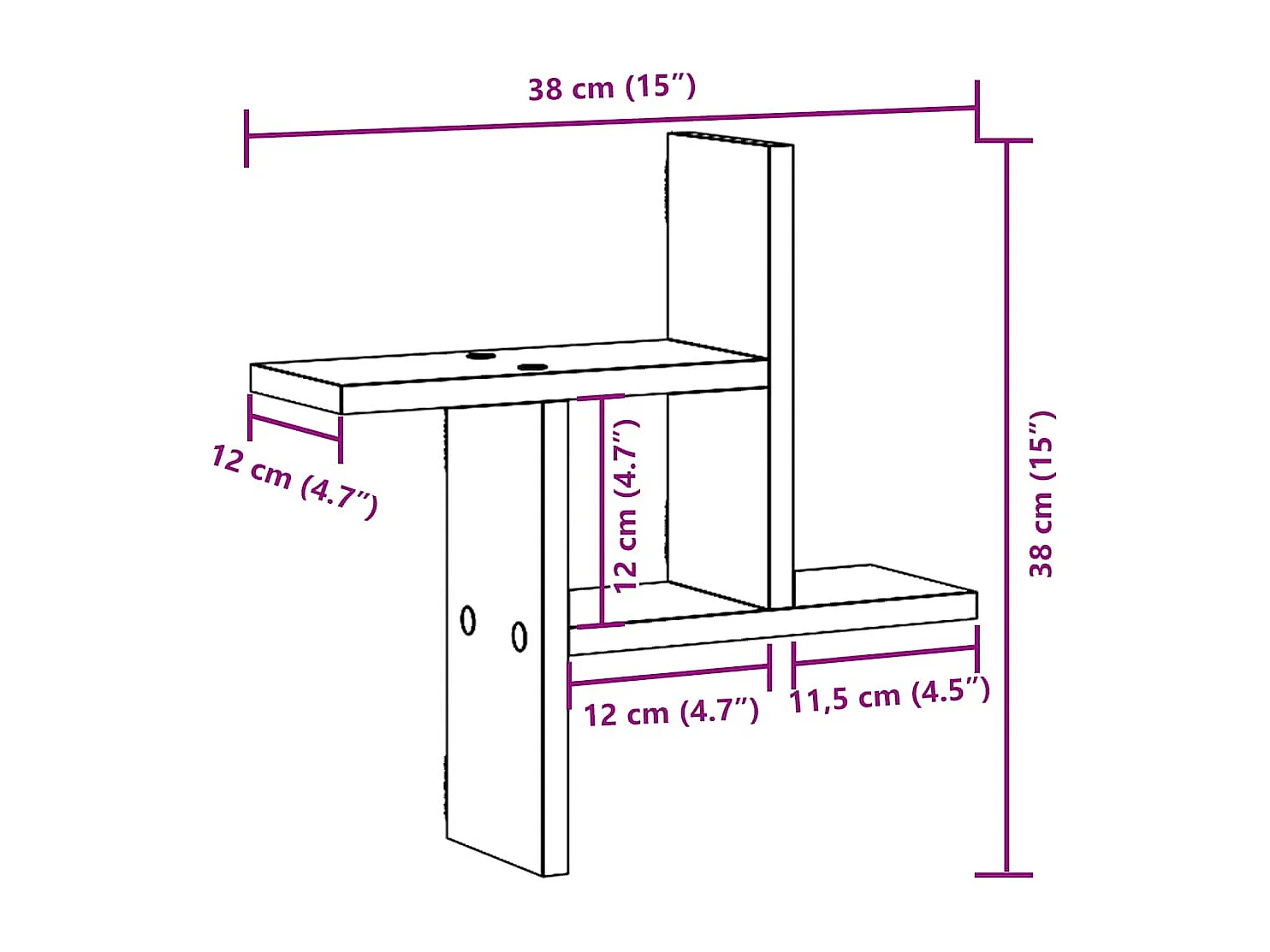 Étagères murales 2 pcs noir 38x12x38 cm bois d'ingénierie