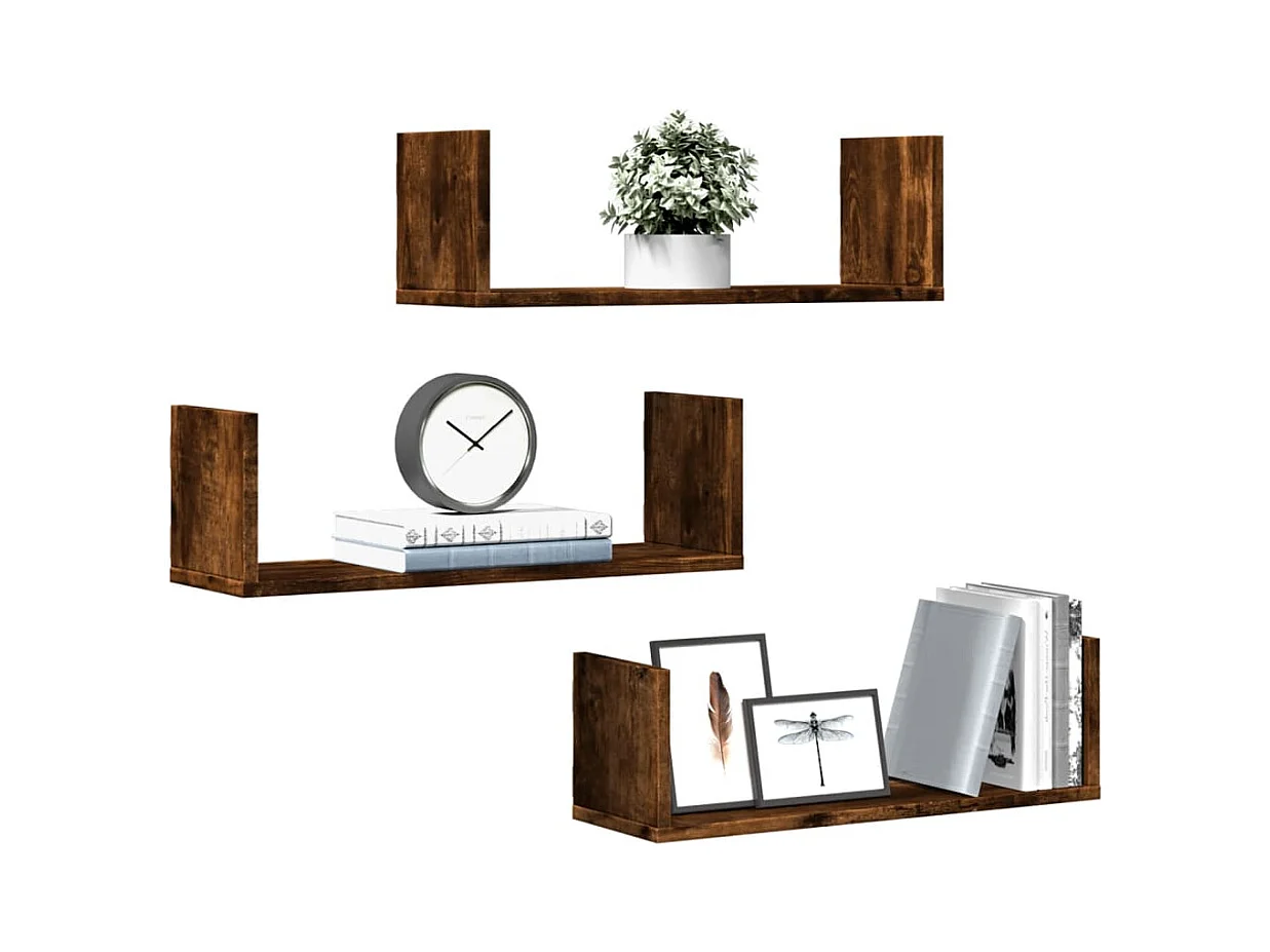 Étagères murales 3 pcs chêne fumé 58x18x18 cm bois d'ingénierie