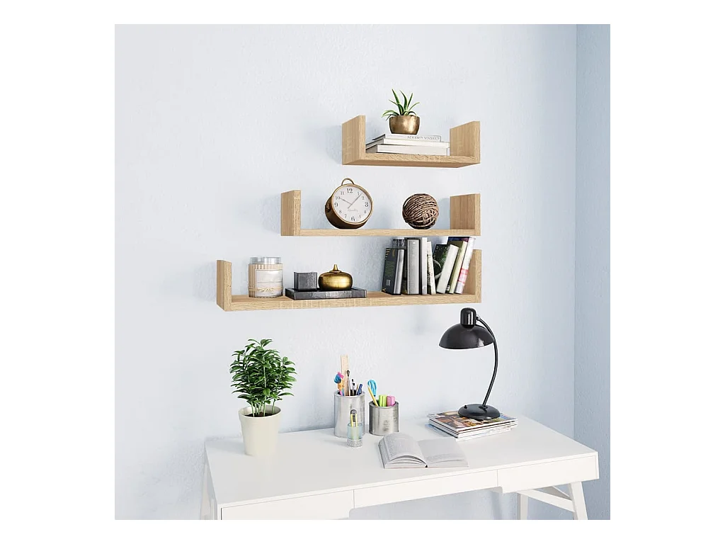 Étagères murales 3 pcs Chêne sonoma Aggloméré OFR28066 BonneVie Meuble