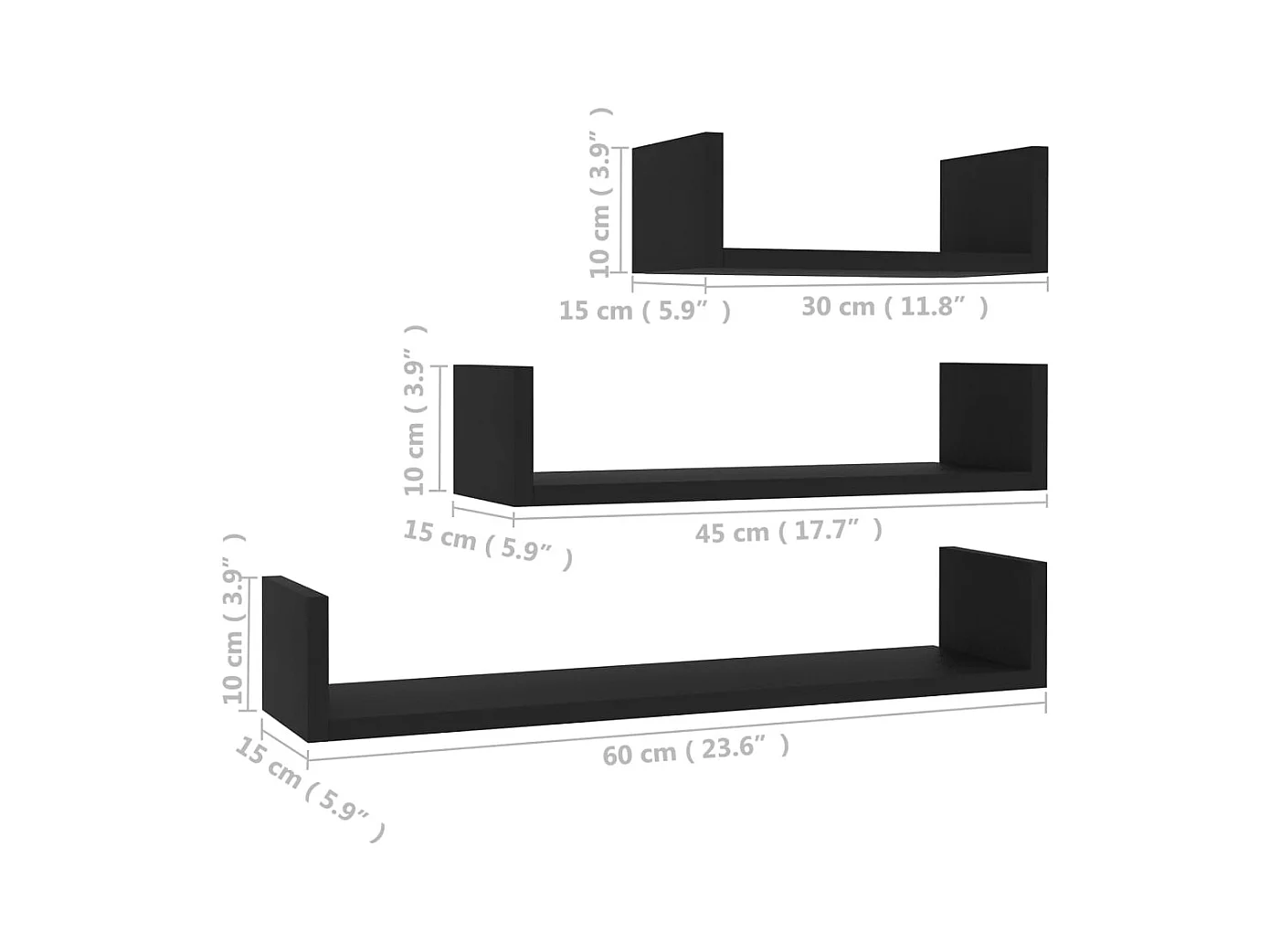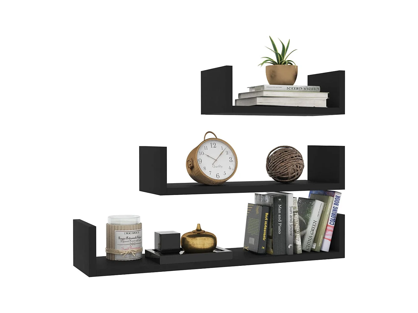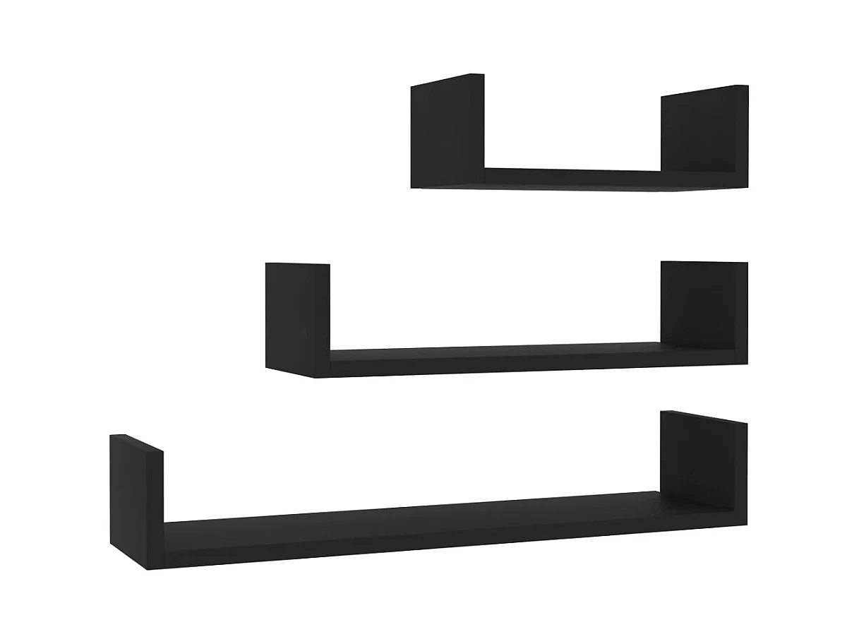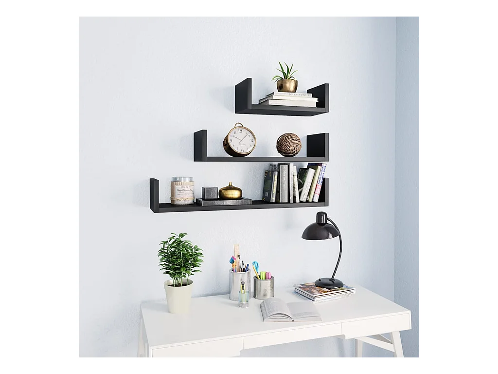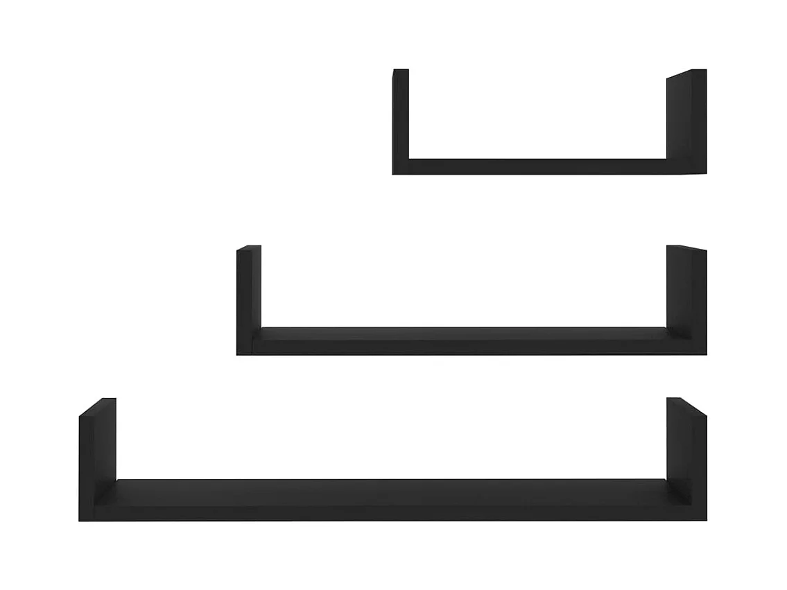 Étagères murales 3 pcs Noir Bois d'ingénierie