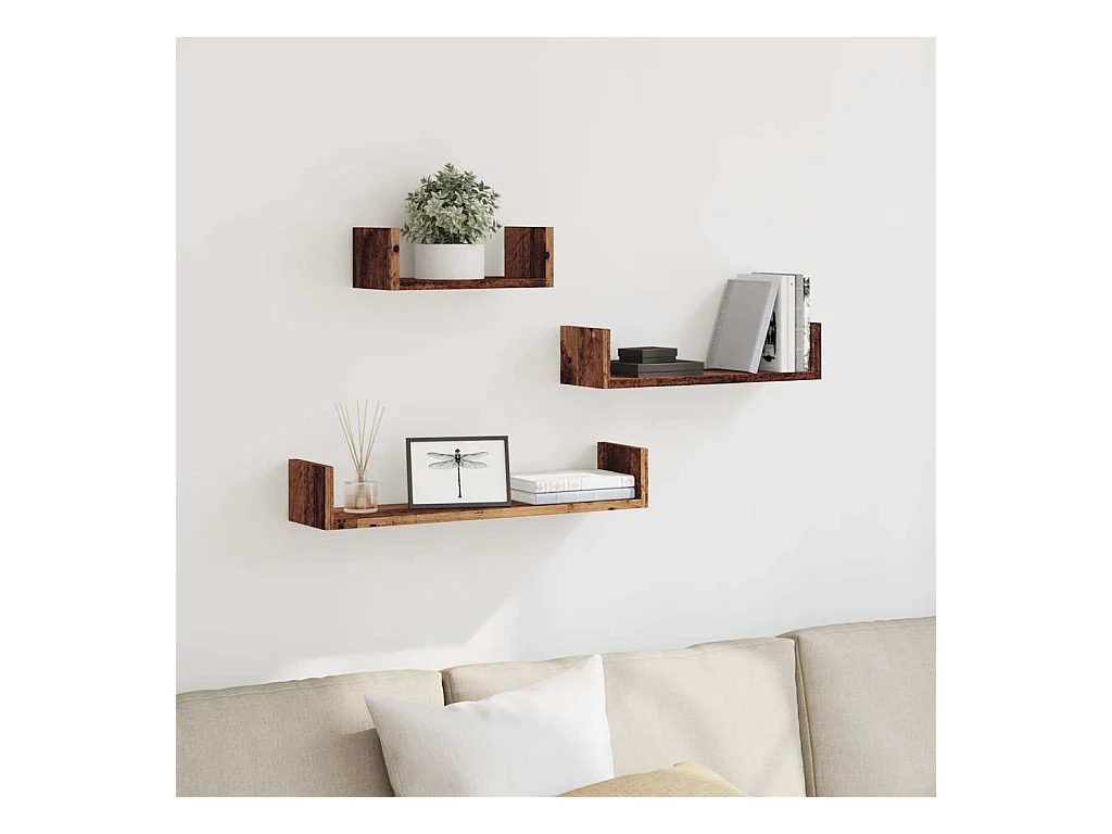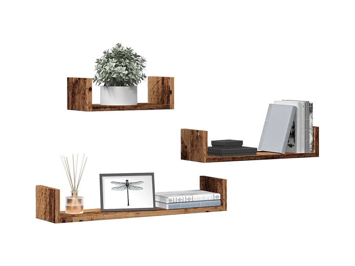 Étagères murales 3 pcs vieux bois bois d'ingénierie