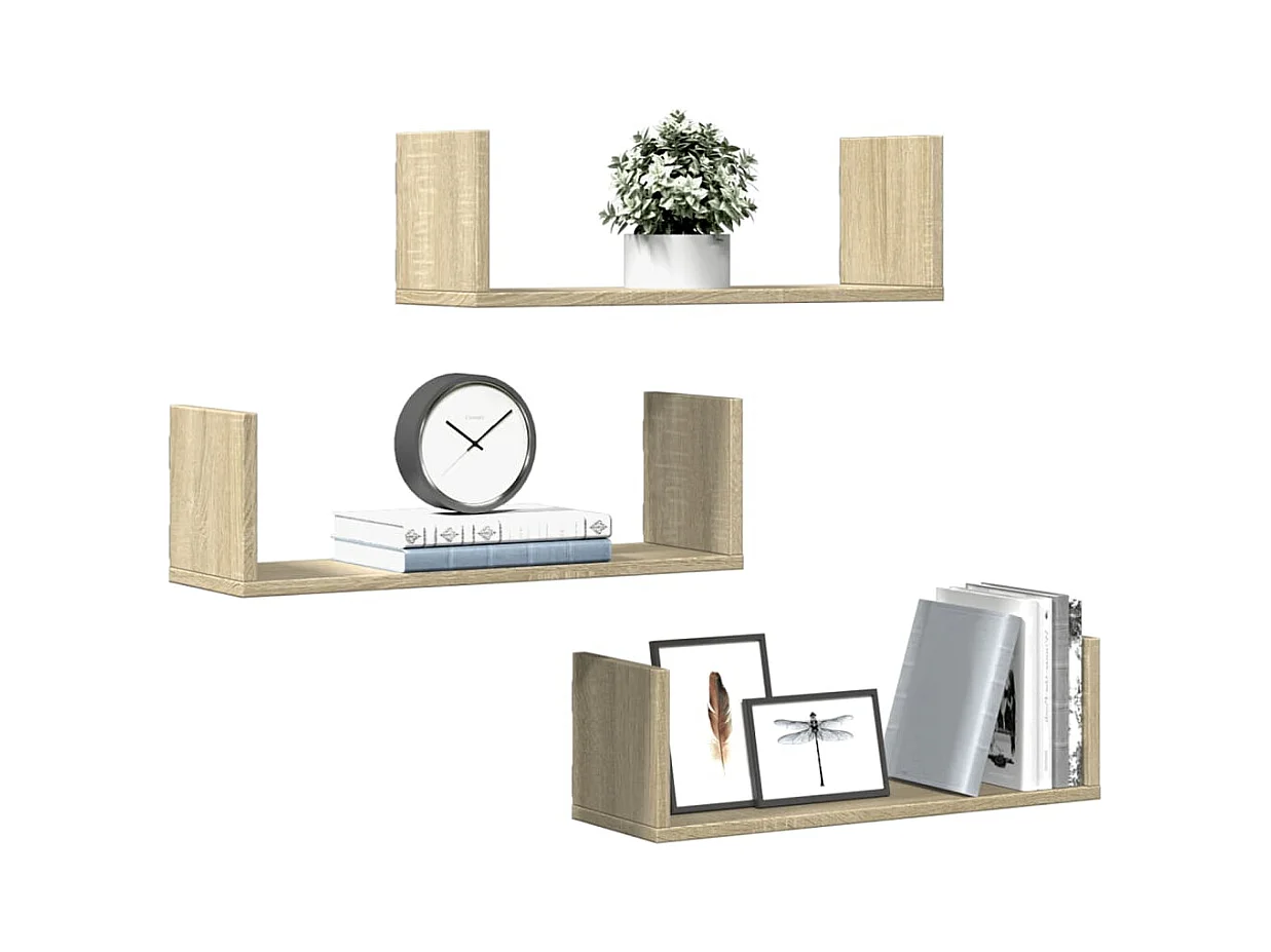 Ensemble d'étagères murales 3pcs chêne sonoma bois d'ingénierie
