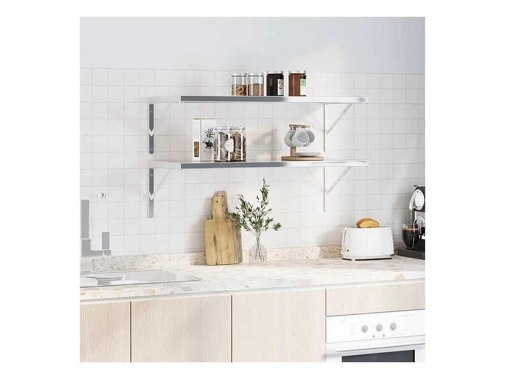 Étagères murales 2 pcs 100x23,5x3 cm argenté acier inoxydable FR492180