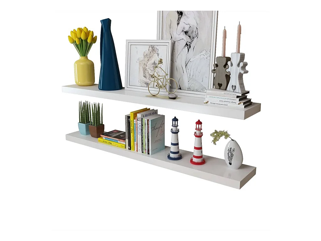 Étagères murales murales 2 pcs blanc 120x23,5x3,8 cm MDF OFR50057 BonneVie Meuble