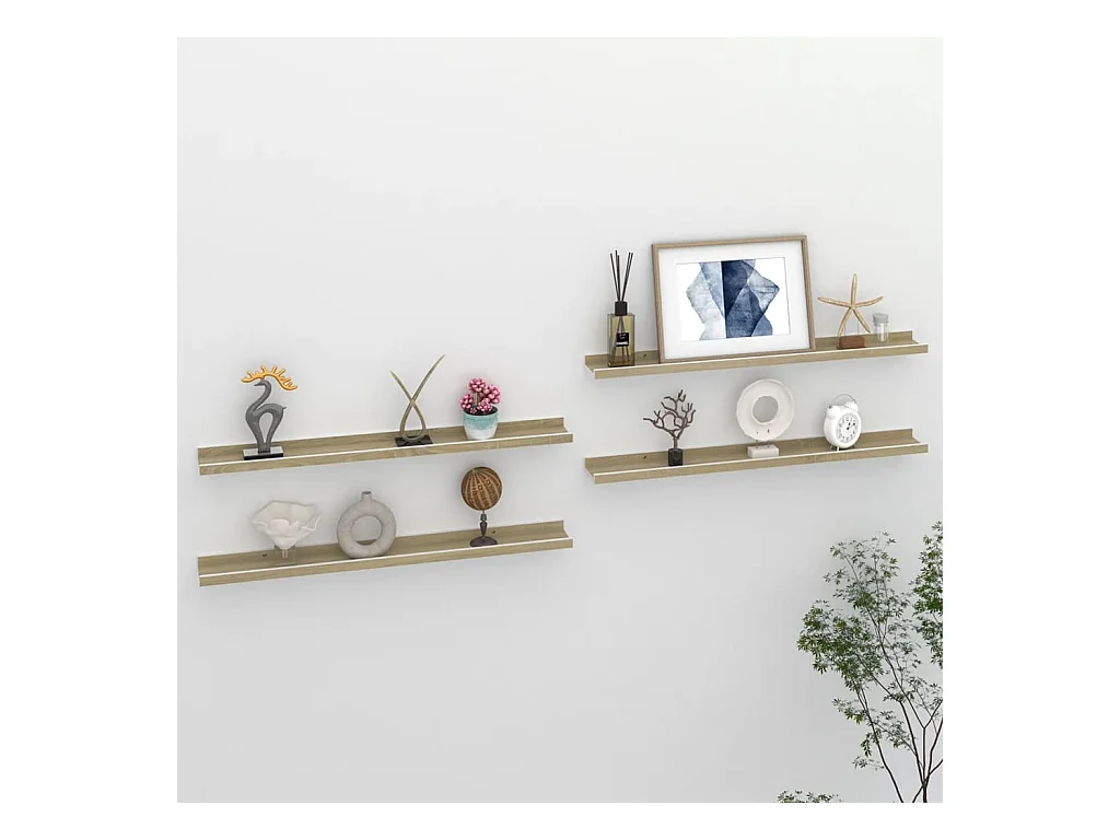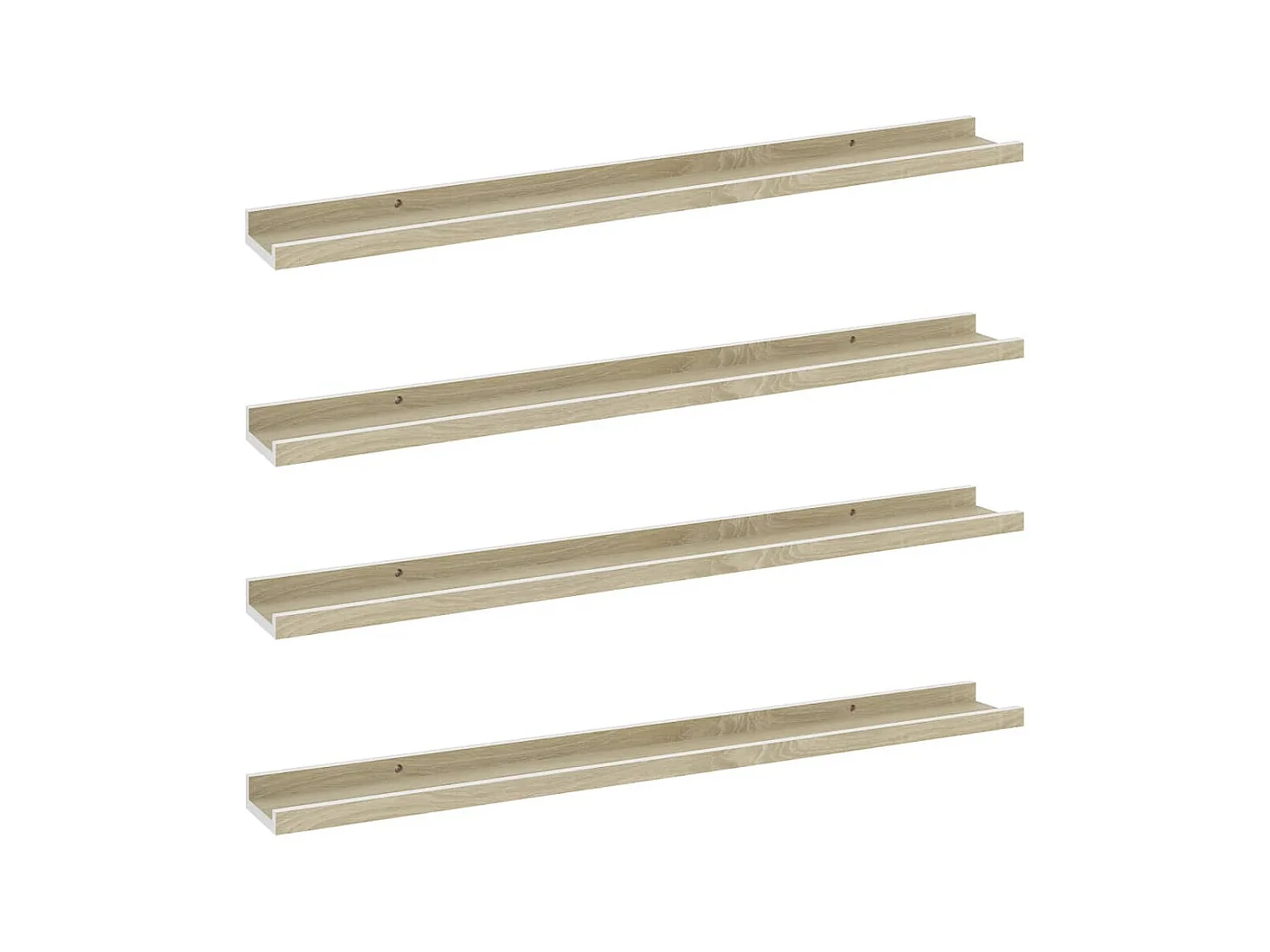 Étagères murales 4 pcs blanc et chêne sonoma 80x9x3 cm OFR90857 BonneVie Meuble