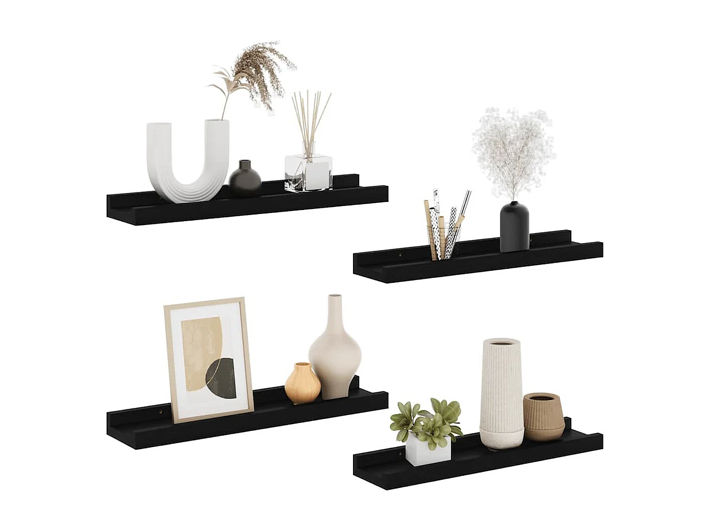 Étagères murales 4 pcs Noir 60x9x3 cm
