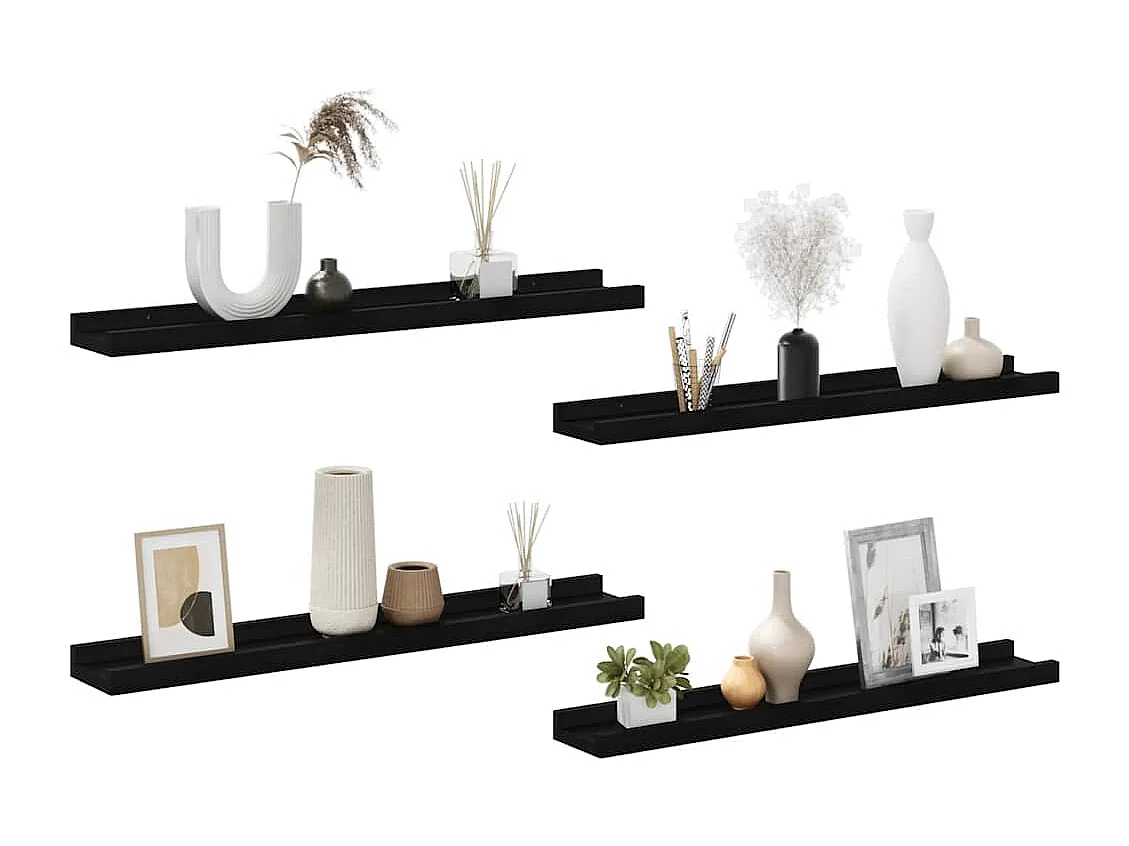 Étagères murales 4 pcs Noir 60x9x3 cm