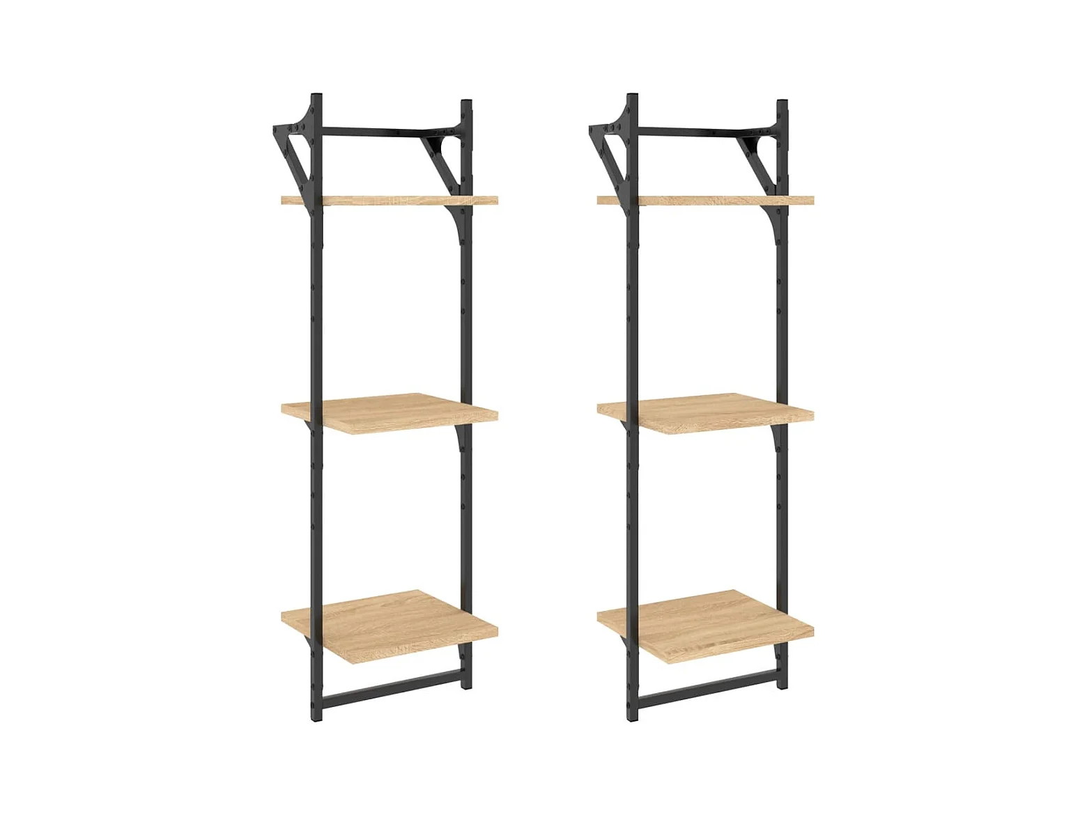 Étagères murales à 3 niveaux avec barres 2 pcs chêne sonoma