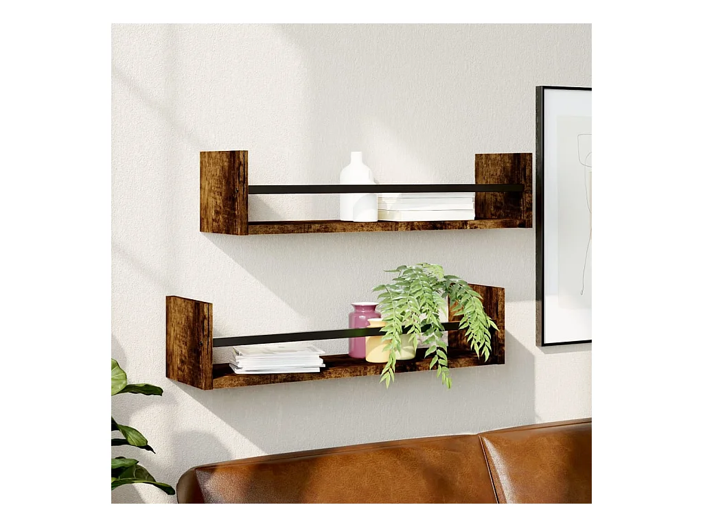 Étagères murales avec barres 2 pcs chêne fumé 60x16x14 cm