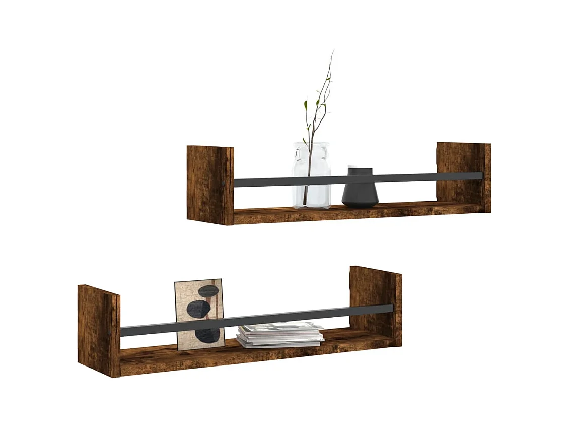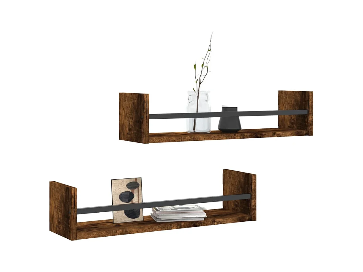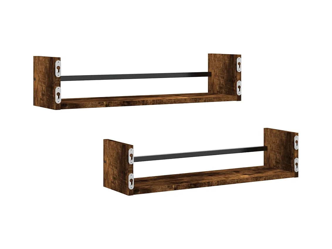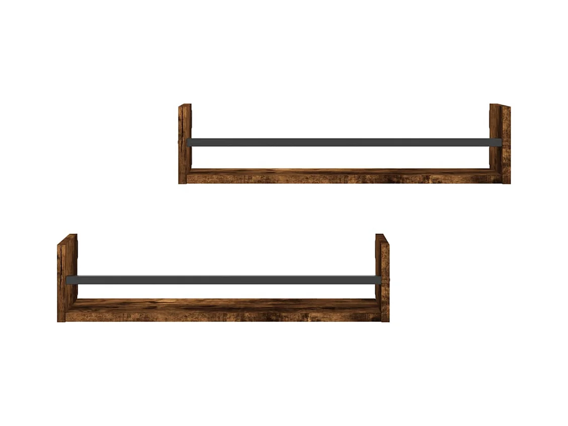 Étagères murales avec barres 2 pcs chêne fumé 80x16x14 cm