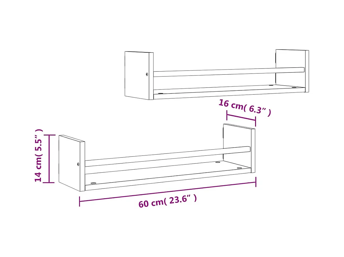 Étagères murales avec barres 2 pcs chêne sonoma 60x16x14 cm