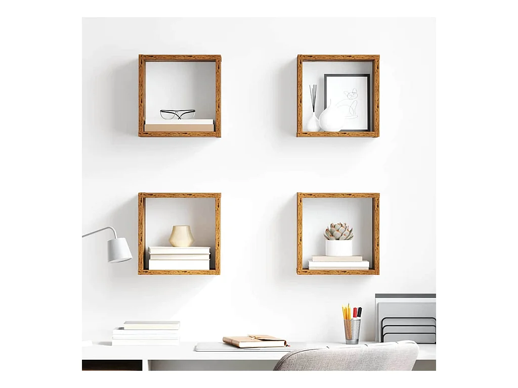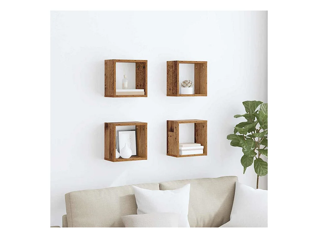 Étagères murales avec étagère 4 pcs Bois ancien 26 x 15 x 26 cm