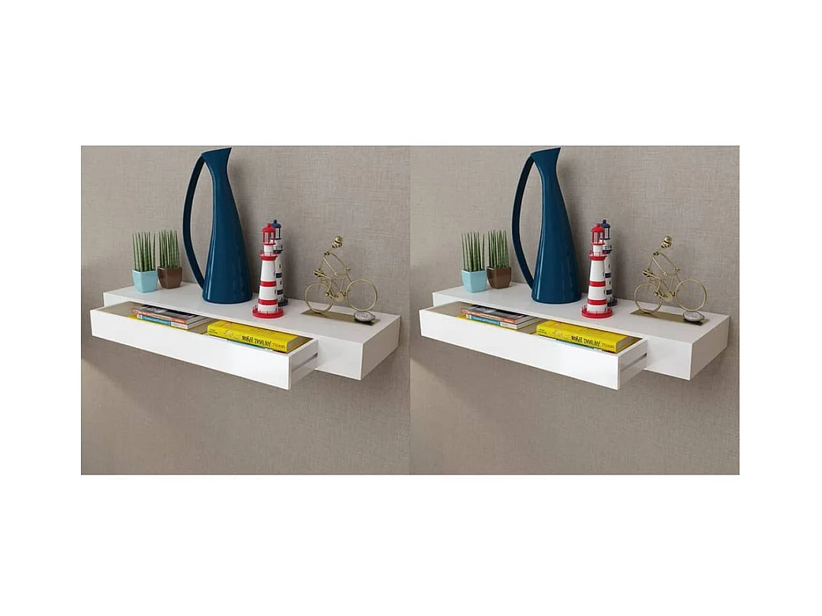 Étagères murales avec tiroirs 2 pcs Blanc 48 cm OFR76551 BonneVie Meuble