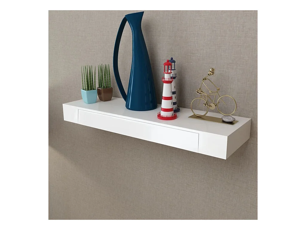 Étagère murale avec 1 tiroir MDF Blanc Rangement de livres/DVD OFR94621 BonneVie Meuble