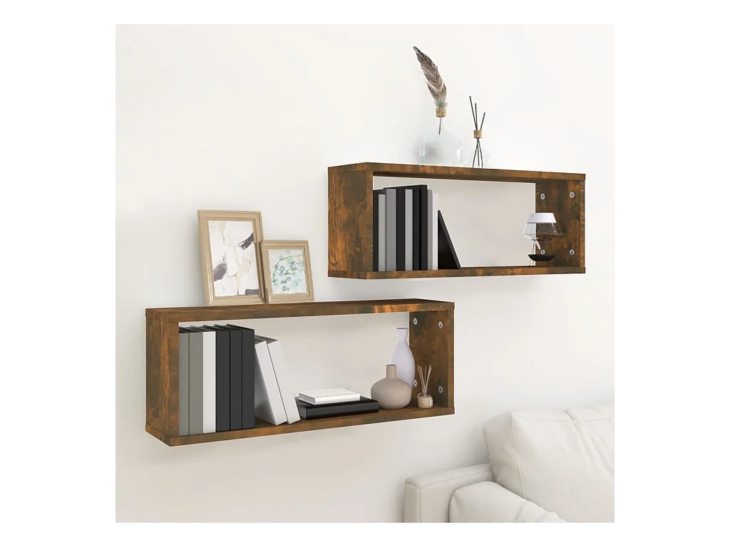 Étagères murales cube 2 pcs Chêne fumé 60x15x23 cm Bois OFR35185 BonneVie Meuble