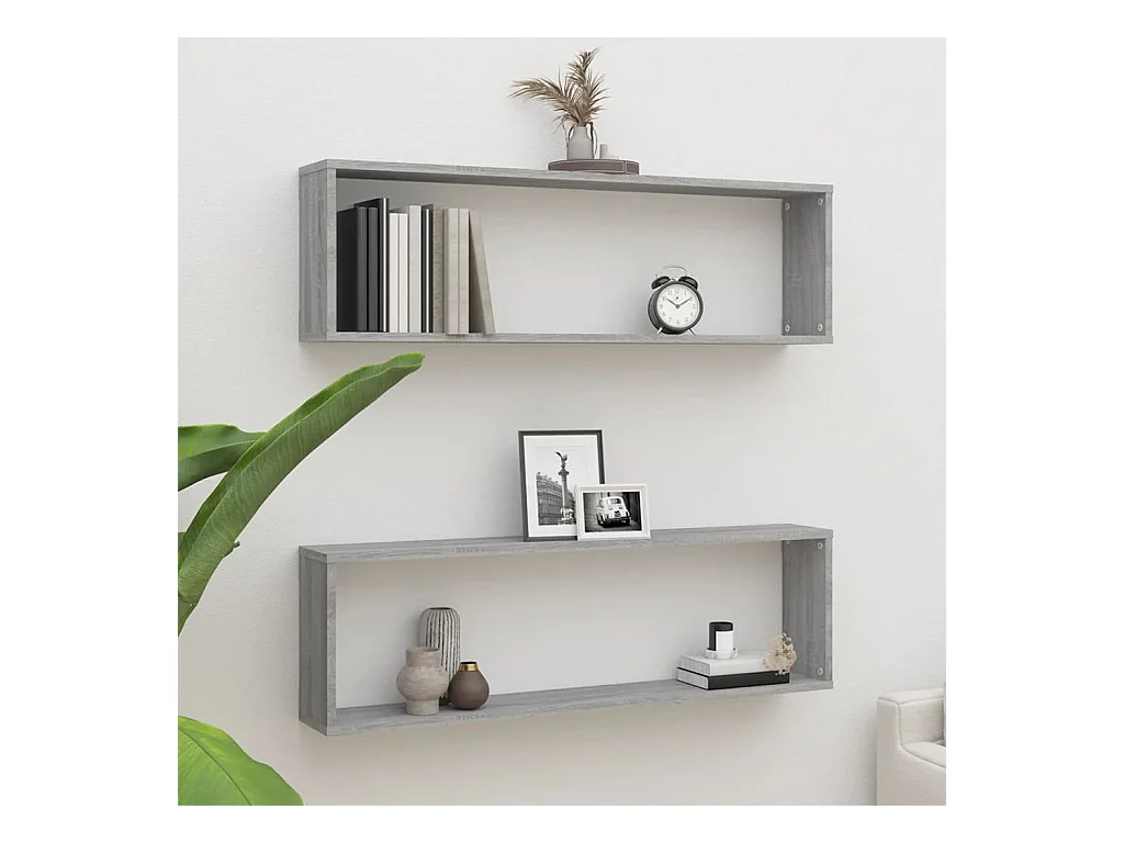 Étagères murales cube 2 pcs Sonoma gris 100x15x30 cm Bois