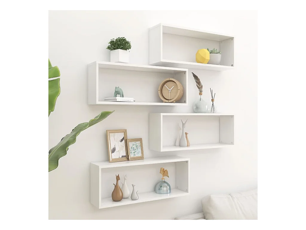 Étagères murales cube 4 pcs Blanc 60x15x23 cm Aggloméré OFR65872 BonneVie Meuble