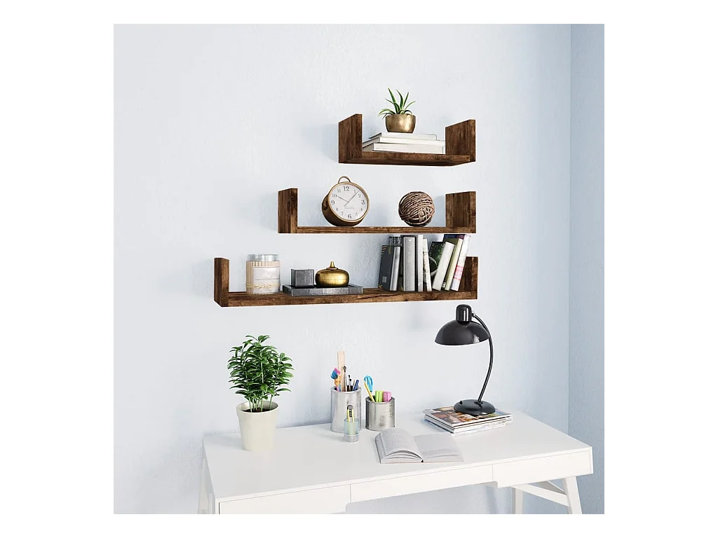 Étagères murales d'affichage 3 pcs Chêne fumé Bois d'ingénierie