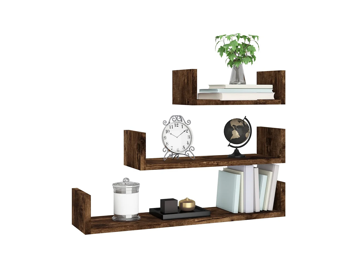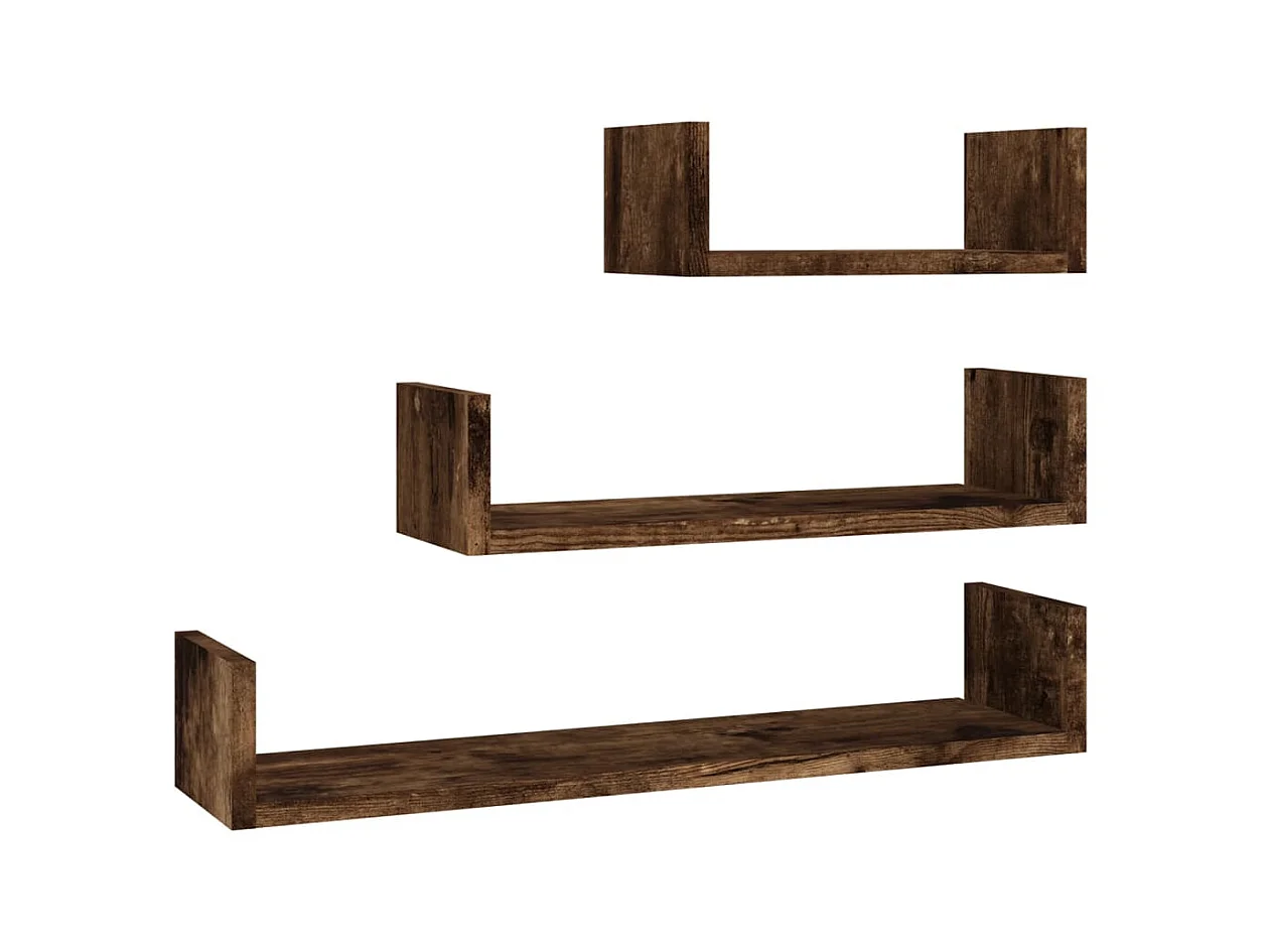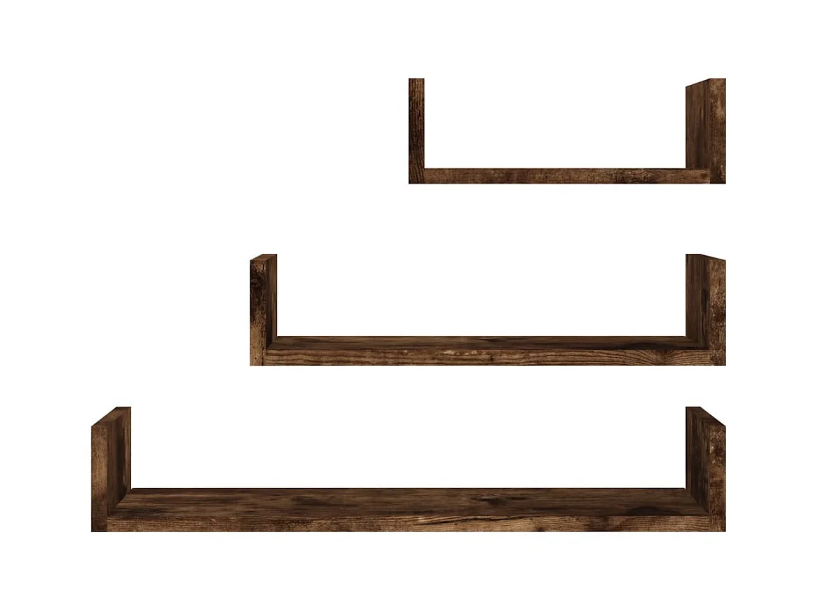 Étagères murales d'affichage 3 pcs Chêne fumé Bois d'ingénierie OFR87631 BonneVie Meuble