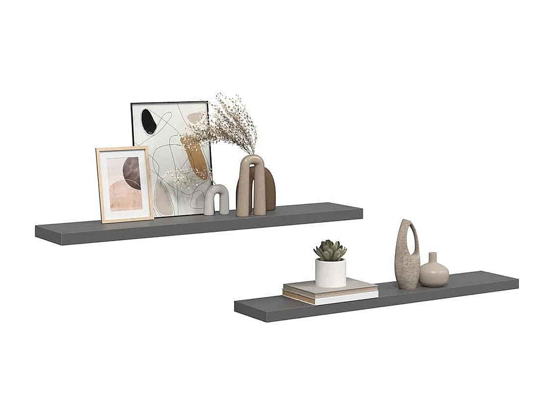 Étagères murales flottantes 2 pcs gris brillant 120x23,5x3,8 cm