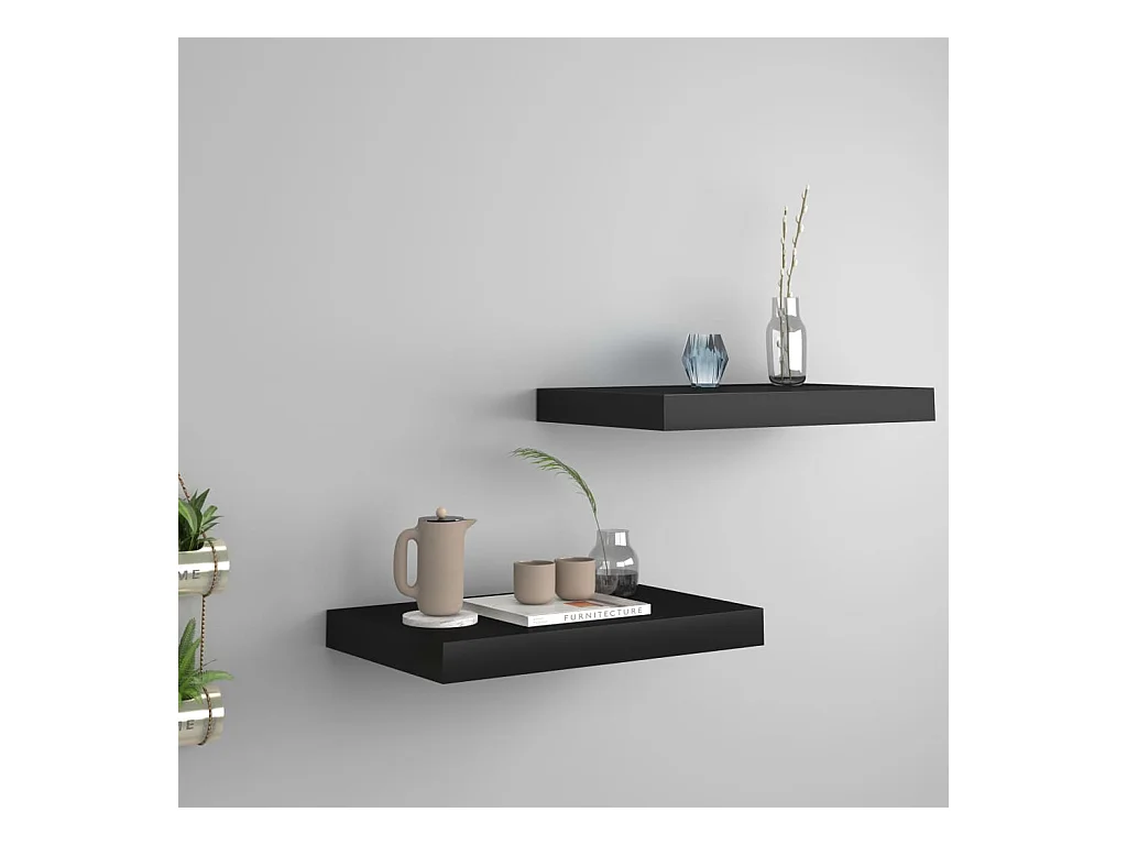 Étagères murales flottantes 2 pcs noir 40x23x3,8 cm MDF