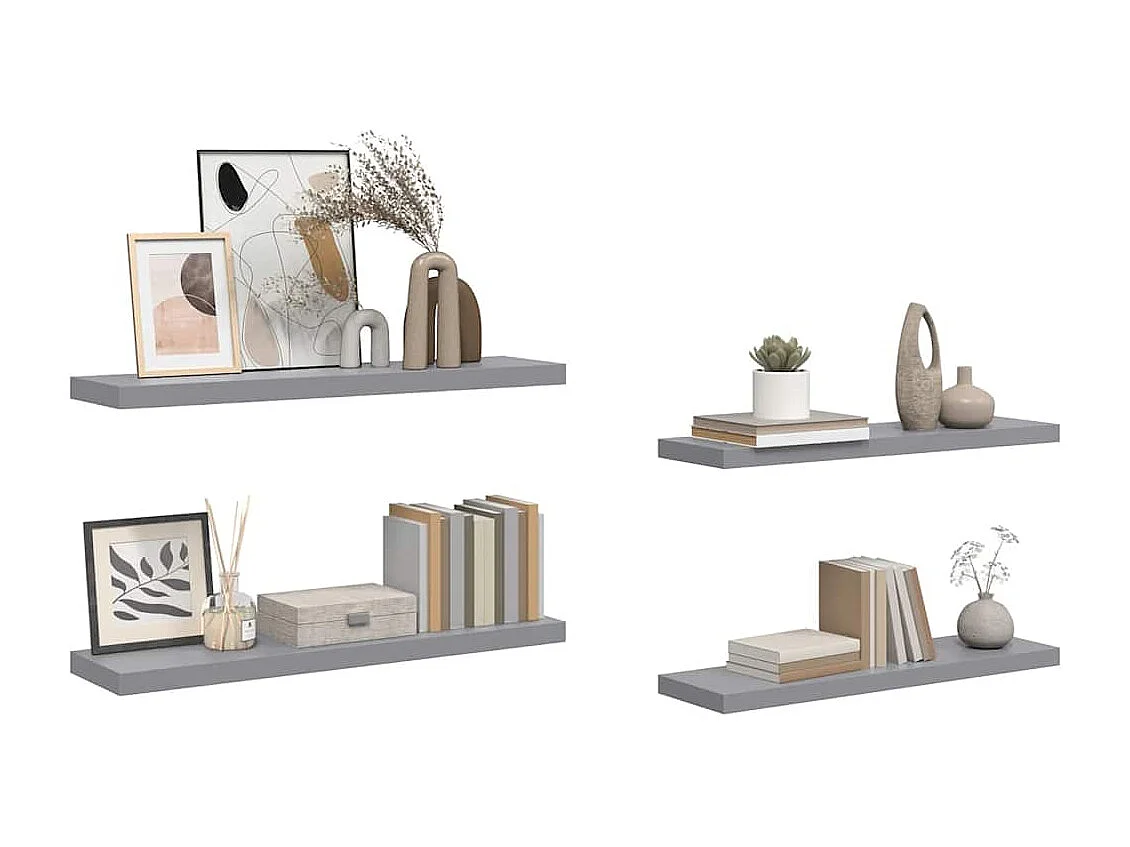 Étagères murales flottantes 4 pcs gris 90x23,5x3,8 cm MDF
