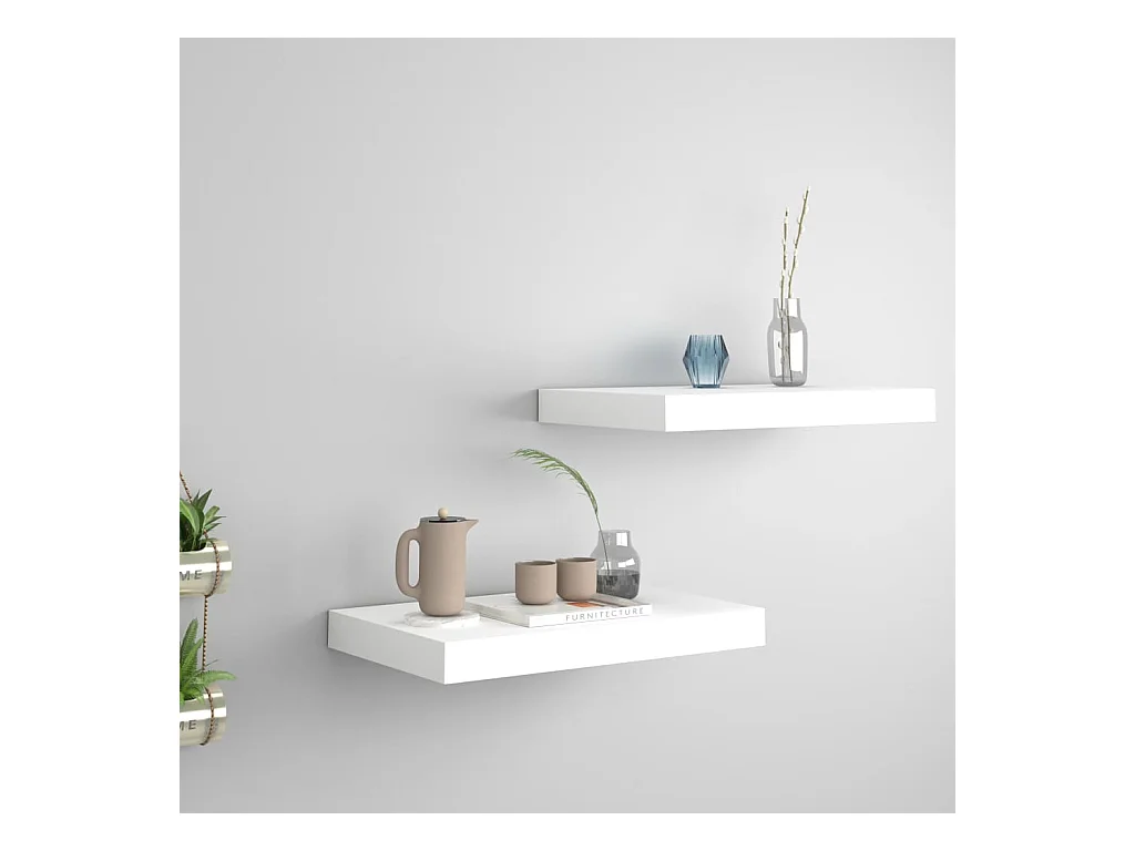Étagères murales murales 2 pcs blanc 40x23x3,8 cm MDF OFR43412 BonneVie Meuble
