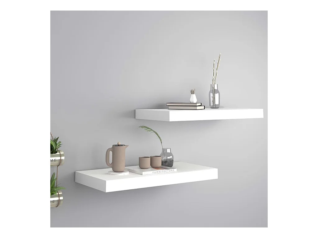 Étagère murale murale 2 pcs Blanc brillant 50x23x3,8 cm MDF OFR28287 BonneVie Meuble