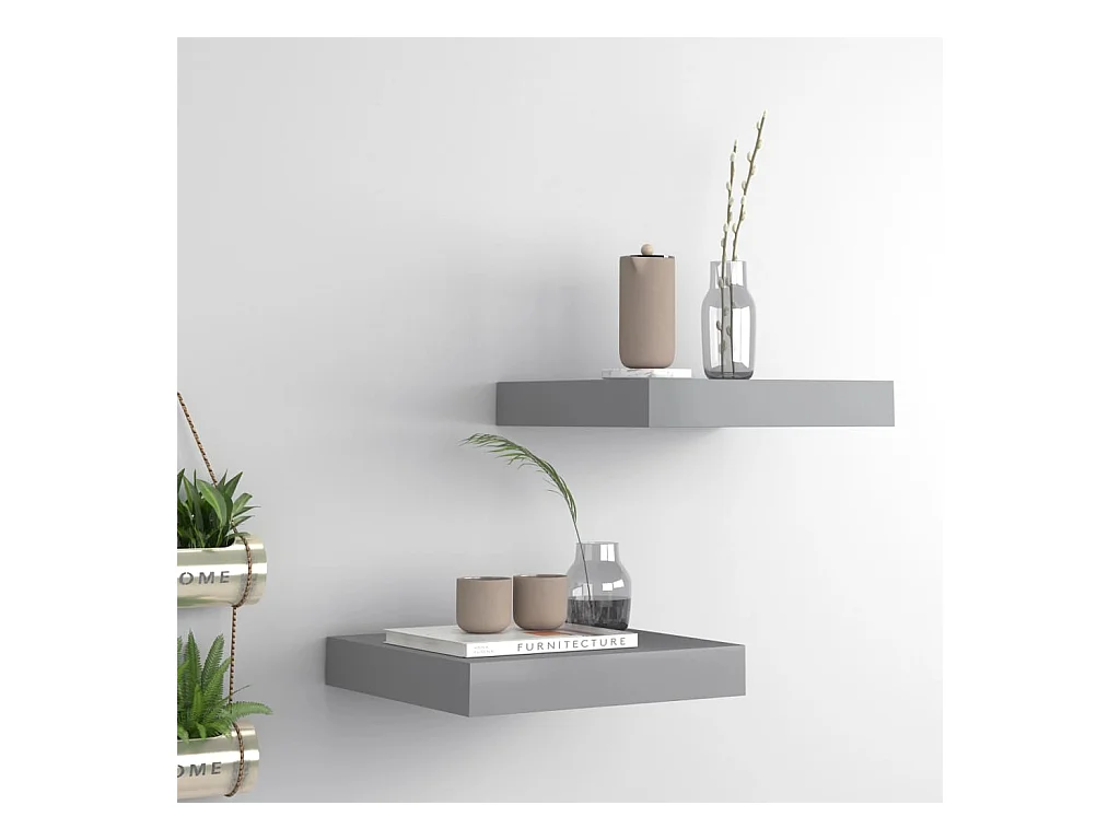 Étagère murale murale 2 pcs Gris brillant 23x23,5x3,8 cm MDF OFR19903 BonneVie Meuble