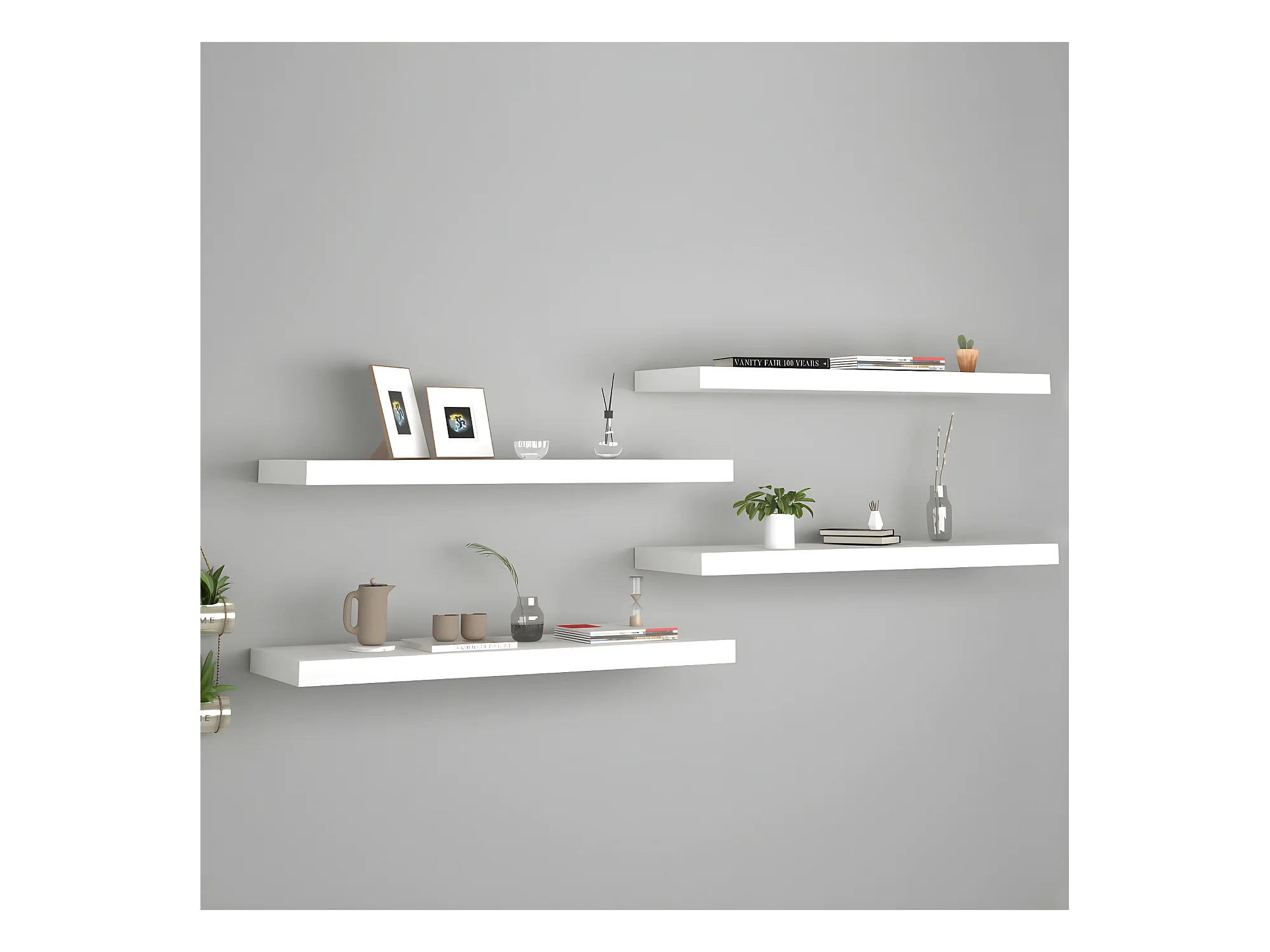 Étagère murale murale 4 pcs Blanc brillant 80x23,5x3,8cm MDF OFR53234 BonneVie Meuble